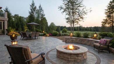 Inspiring Stamped Concrete Patio Designs with Cozy Fire Pits