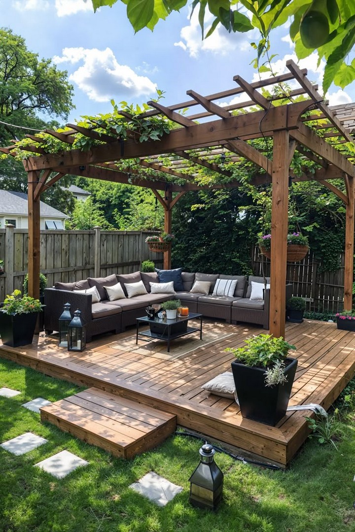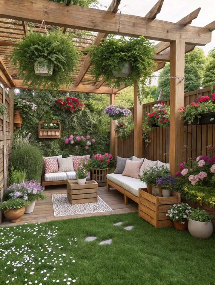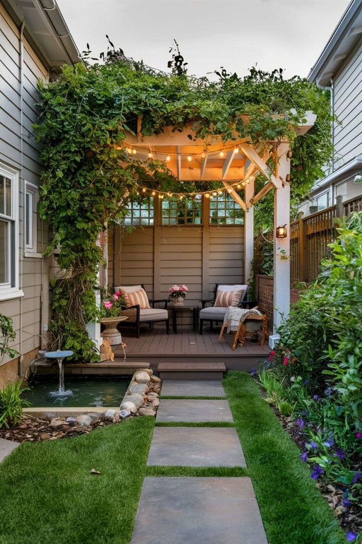 A pergola can instantly elevate the aesthetic of your small backyard while providing much-needed shade. Choose a compact design that fits your space and consider adding climbing plants like ivy or wisteria for a natural, green canopy. You can even hang outdoor curtains or string lights to further enhance the ambiance. A retractable canopy or shade screen is a great addition to provide adjustable coverage during sunny days.