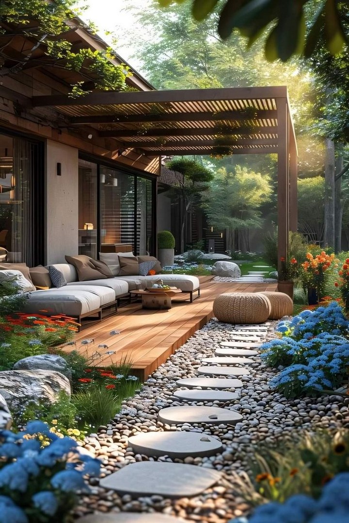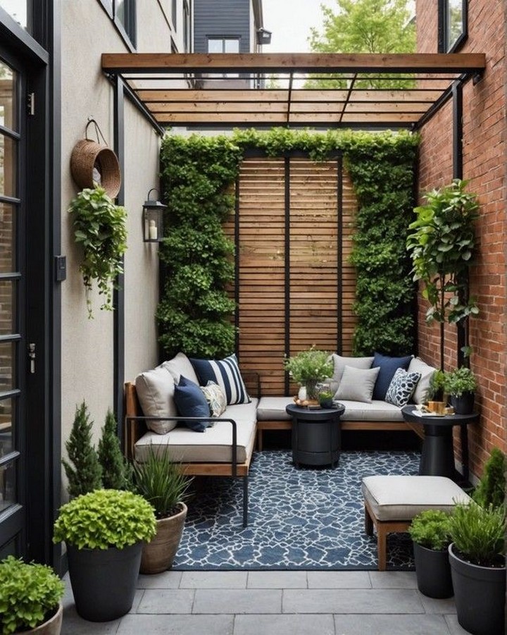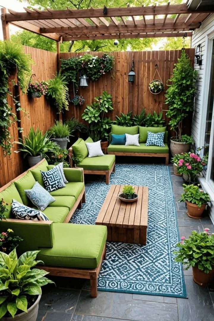 If relaxation is your goal, creating a cozy lounge area is essential. A daybed or a small sectional sofa can provide a comfortable, stylish spot to unwind. Add plush cushions, soft throws, and perhaps a small coffee table for the perfect outdoor retreat. Position your lounge near lush plants or under a pergola for additional privacy.