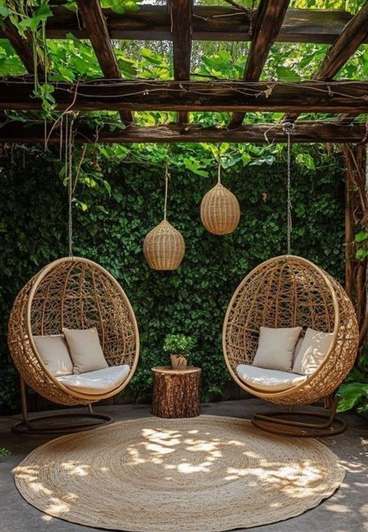 If you’re looking to save space while still creating a relaxing spot, hanging chairs are a fantastic option. A hammock chair or a suspended egg chair offers a comfortable place to relax while adding an interesting design element to your backyard. Suspend them from a sturdy structure, such as a pergola or tree, to create a serene, boho-chic vibe. Hang your chair in a shaded spot to enjoy it even on the sunniest days.