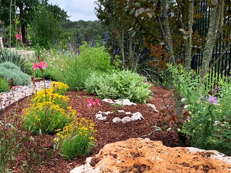 It’s almost like a cottage garden, but with Texas-tough plants. Everything here can handle heat and won’t pout if you forget to water.