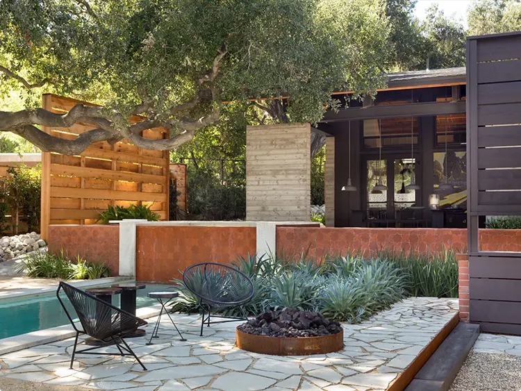 Those rust-colored walls are such a cool backdrop. The agaves and grasses planted in front look super modern against them.