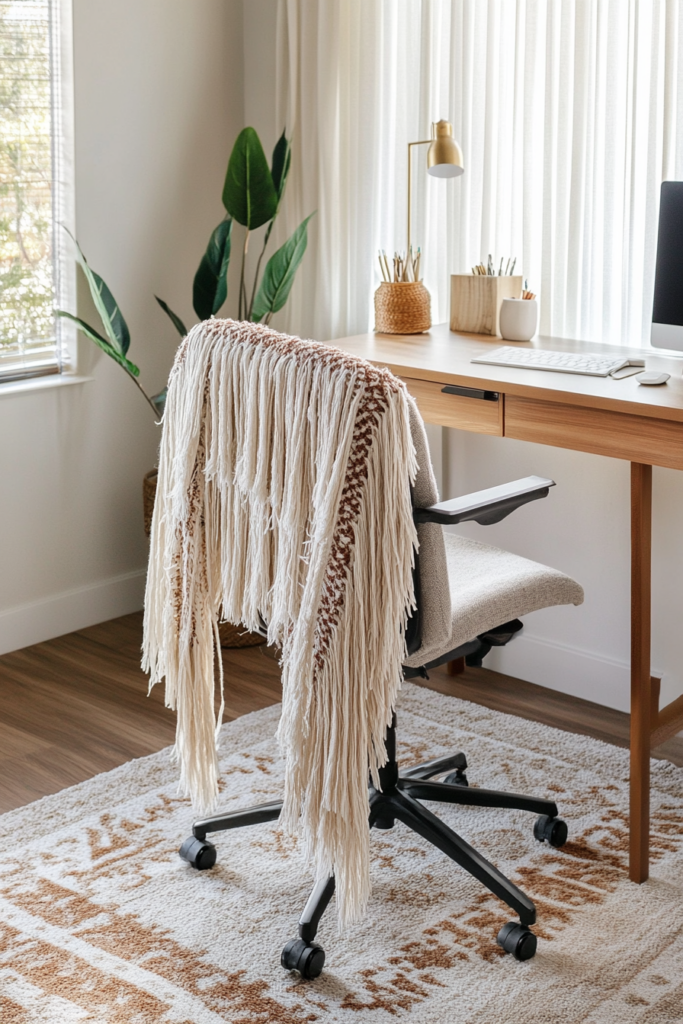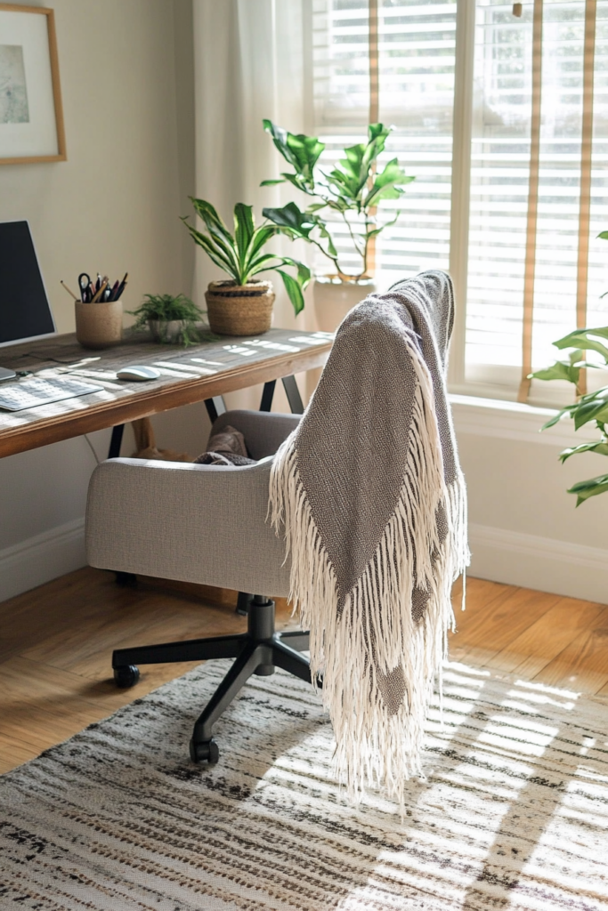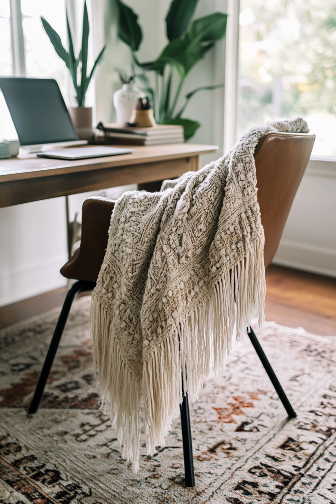 A fringed throw blanket adds a cozy touch to your office. You can drape it over your chair or keep it nearby for those chilly days.
