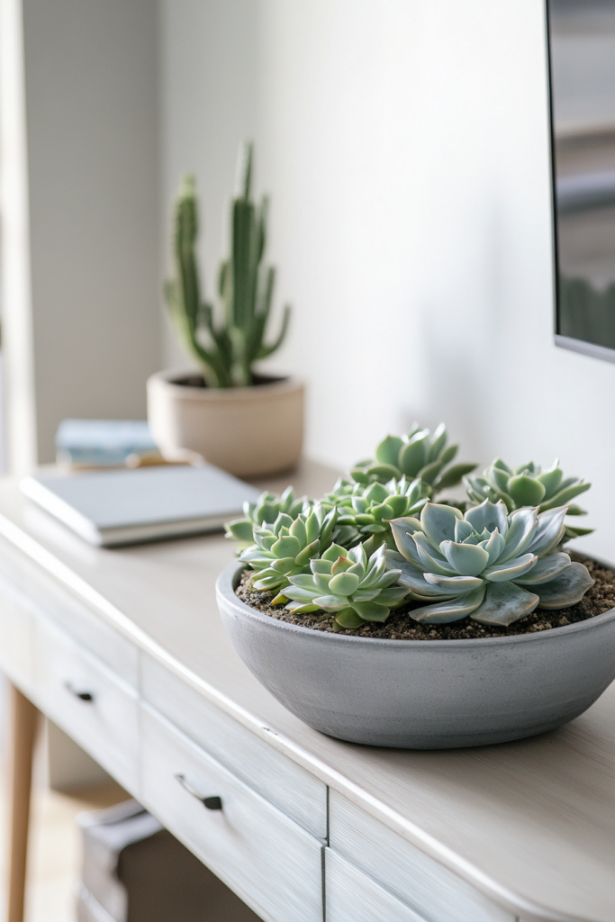 A succulent terrarium can make your office space feel fresh and inviting. These little gardens are easy to care for and add a touch of greenery to your desk.