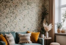 - Delicate floral accents on dishware that resonate with the wallpaper