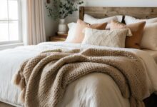 When selecting a blanket, think about colors that complement your bedroom palette. Earthy tones like indigo, rust, and sage green can beautifully accentuate neutral color schemes, while vibrant hues can add a pop of personality to more muted environments. Don’t forget the power of patterns! Stripes, cables, and tassels can create an engaging focal point that draws the eye. To showcase your throws, effortlessly toss them over the arm of a chair or neatly fold them at the foot of your bed, making sure they align with the overall vibe of your room.