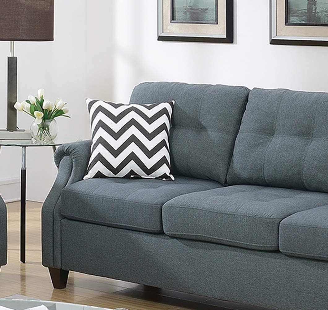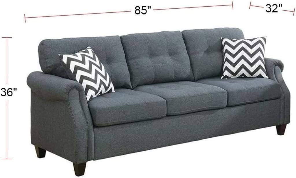 A first look at your plush polyfiber living room set with three seat sofa and loveseat in blue gray