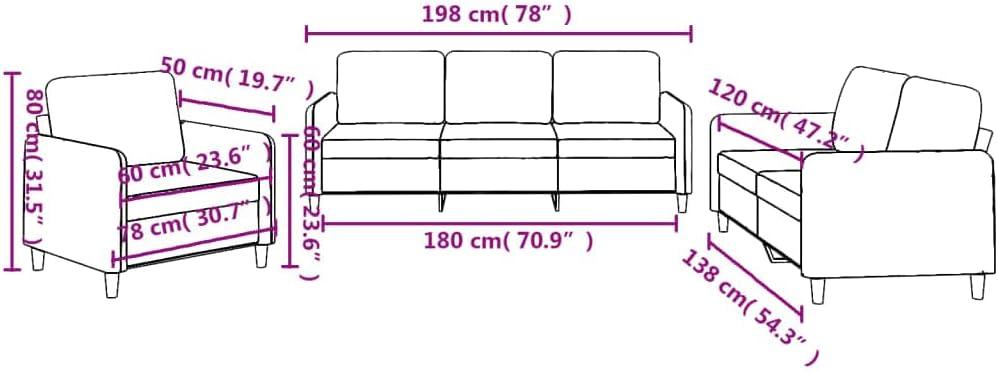 | Configuration | 3-piece (1 armchair, 1 two-seater, 1 three-seater) |
