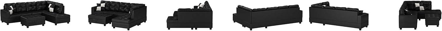 After a few weeks and then months, the A Ainehome 3 PCS Living Room Set, sectional Sofa Set, L-Shape Couch in Home, with Storage Ottoman and Matching Pillows (Black,Right Hand Facing) starts to settle into the room’s rhythms, occupying the corner where people pass and the spot where evenings gather. Its cushions soften in the places that are used most,the seat and back quietly taking on the shapes of regular postures and small unwinding rituals. The black surface develops faint creasing and a soft nap over time—little traces of daily use that mark routine rather than demand attention. In the steady flow of days it simply rests and becomes part of the room.