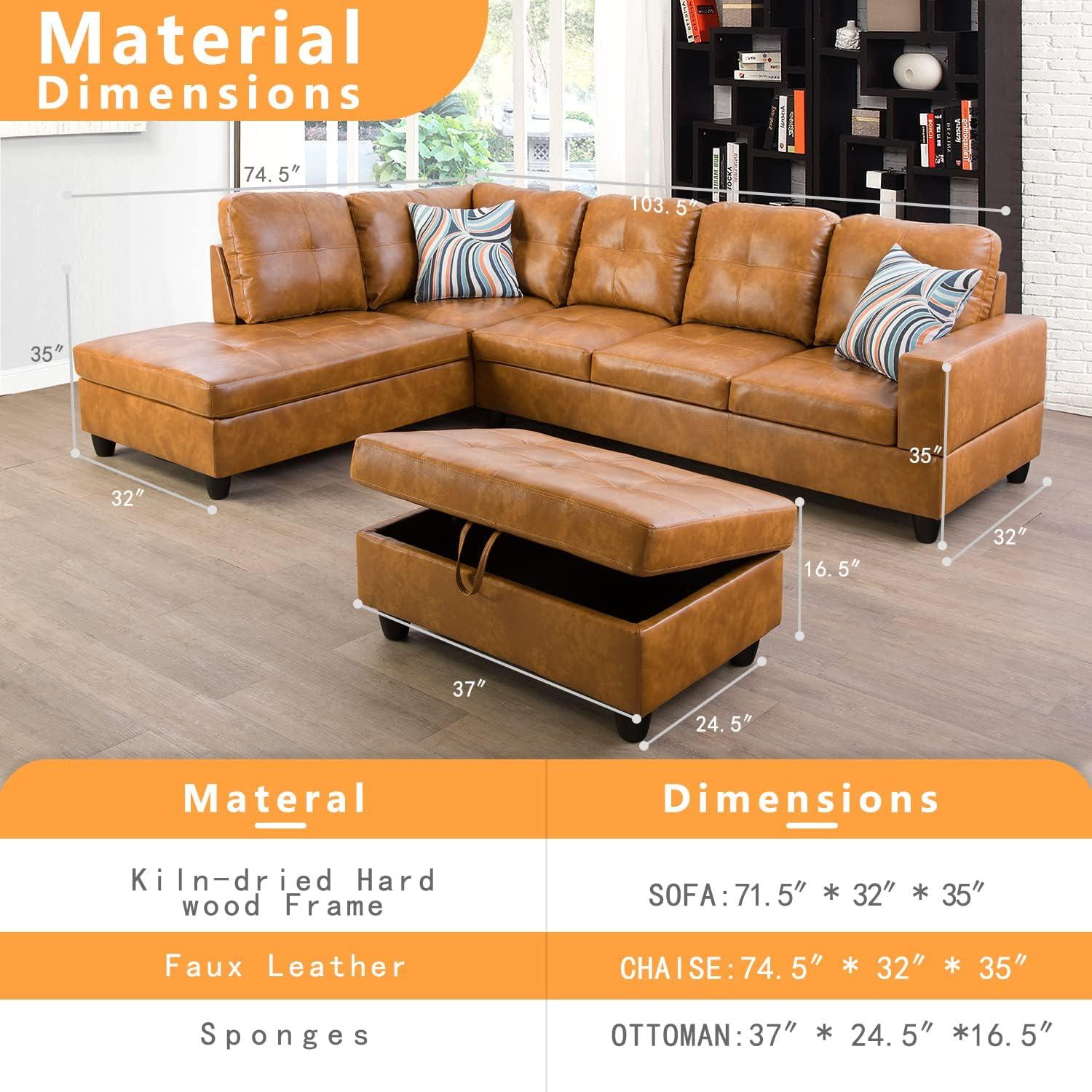 Our time with this L-shaped sectional has been a mix of gratitude and honest critique. At first glance,the design impresses with its sleek faux leather finish,which not only adds a modern touch to our living space but also proves to be quite easy to clean.Assembly was straightforward and, thanks to the modular construction, repositioning the pieces around the room felt effortless. The chaise and generously sized storage ottoman have been particularly practical, offering both comfort and convenience. Built on a kiln-dried hardwood frame with double spring support, it’s clear the durability aspect was thoughtfully designed. The solid wooden framework provides excellent stability,and the cushions strike a balance between softness in the back and firm support on the seat.