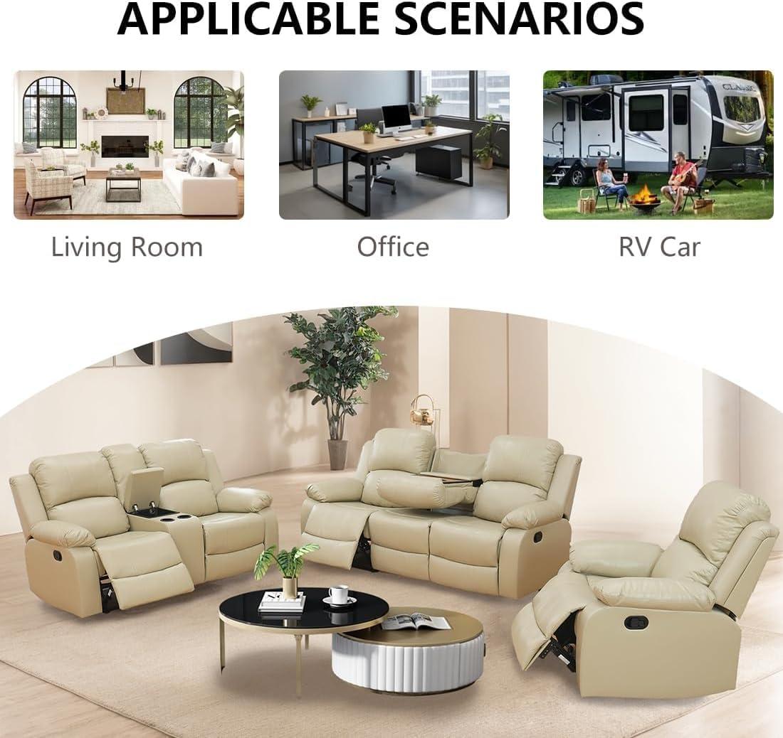 this reclining living room set delivers a cozy, functional, and stylish solution for those who value manual simplicity paired with thoughtful extras like storage and charging. While the manual mechanism and size might require some adjustment on your part, the quality materials and elegant design make it a worthwhile centerpiece for home comfort.