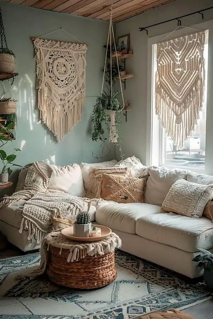 A sizable macramé piece can serve as an inexpensive yet striking wall decor element, introducing texture and a boho vibe. Affordable selections abound online, or try your hand at crafting one yourself with cotton cord and accessible tutorials. Hang it over your sofa or bed to create an immediate boho focal point.