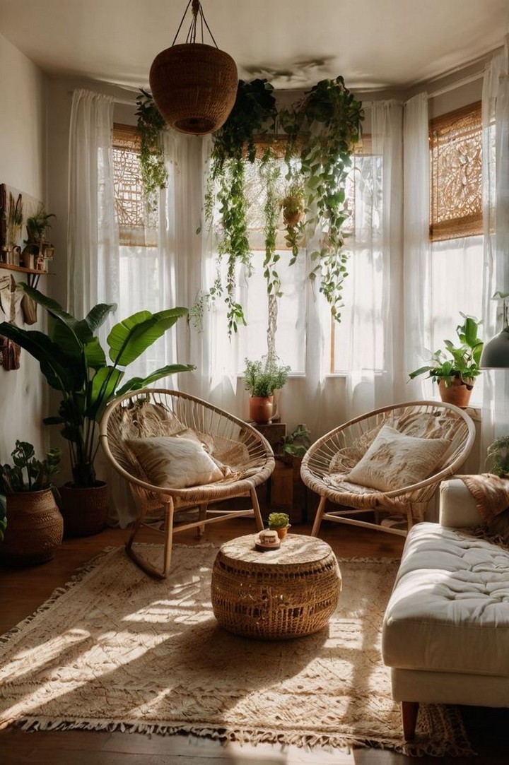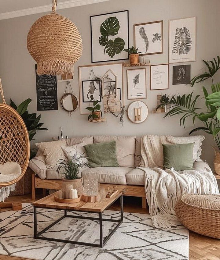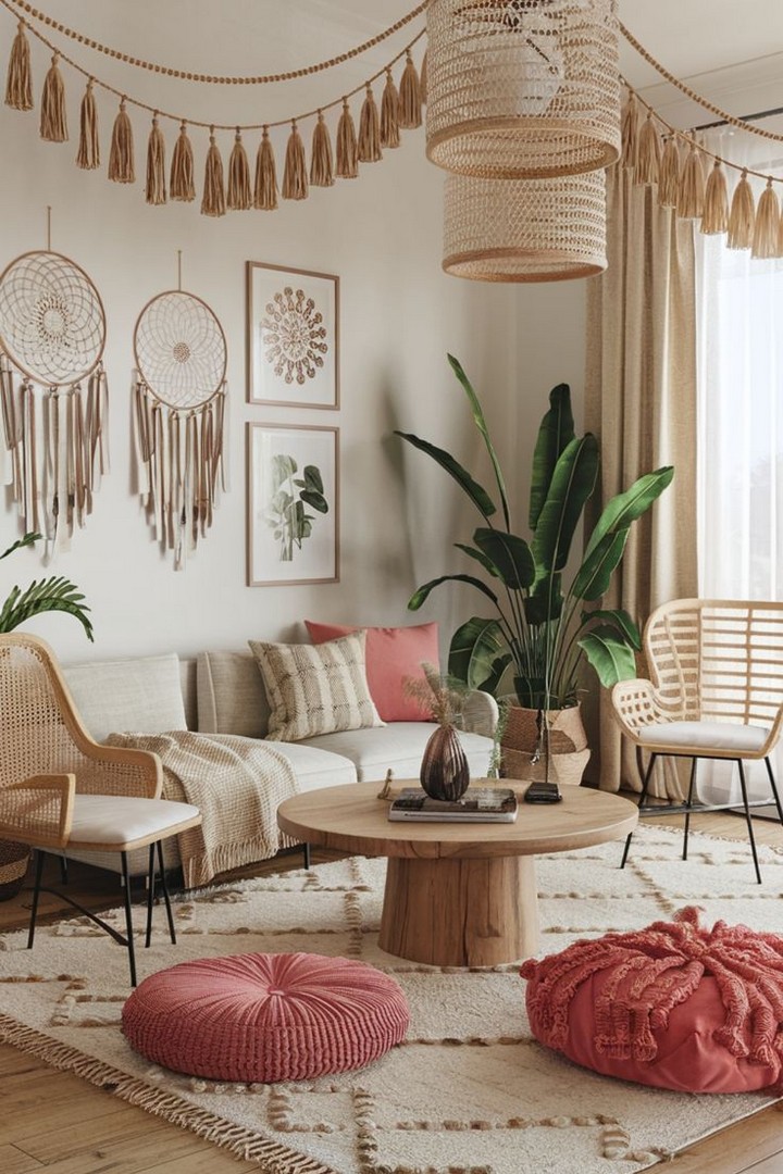Introduce hanging plants such as pothos, spider plants, or string of pearls using DIY macramé hangers made from twine. These suspended greens brighten spaces without consuming floor area, enhancing air quality while reinforcing the organic nature of boho interiors.