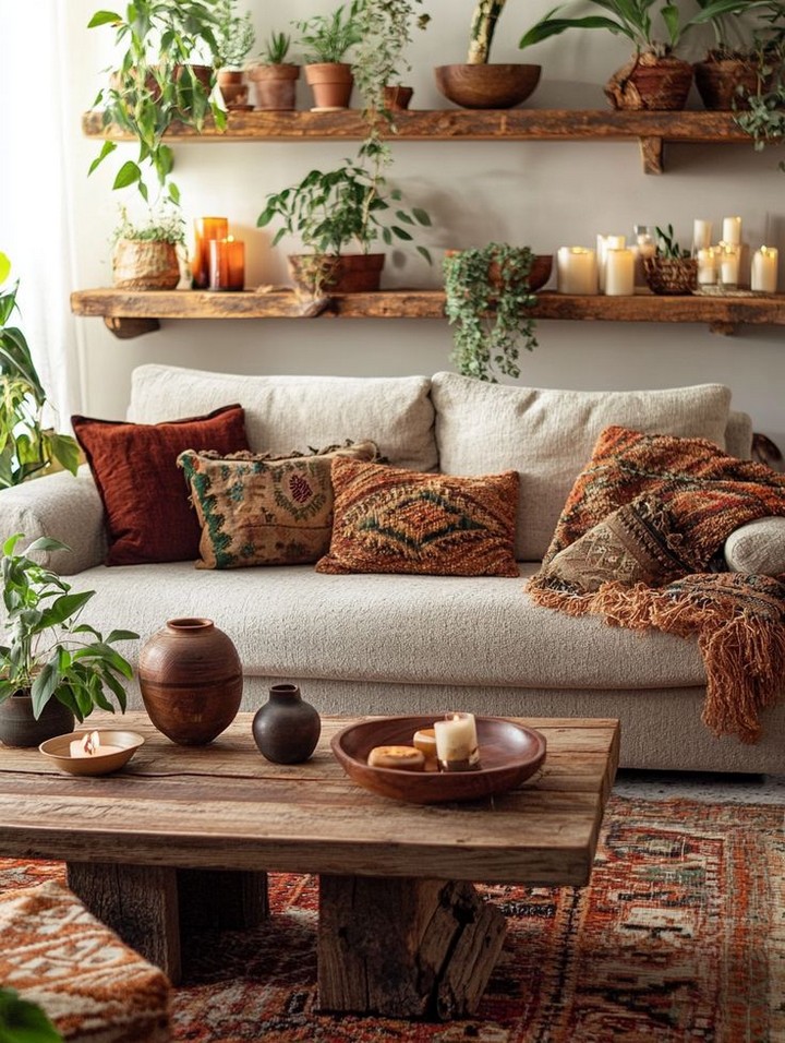 Generate inviting, informal seating by repurposing old pillows and covering them with inexpensive fabric scraps in rich earth shades or ethnic patterns. Stack these cushions in corners or by low tables to embody the effortlessly relaxed boho spirit.