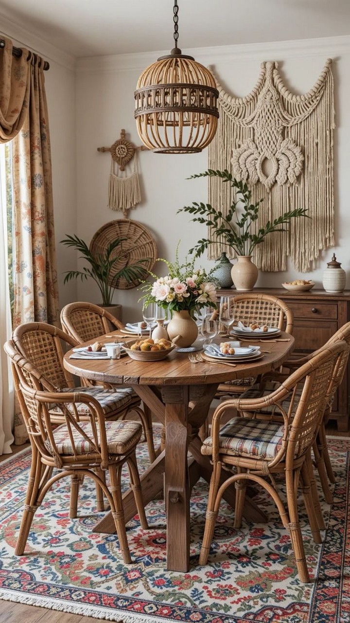 Add warmth to your dining table with jute, bamboo, or rattan placemats enhanced by simple linen or cotton runners. These affordable accents—often under $5 each for placemats—amplify tactile appeal while supporting the natural material focus in boho decor.