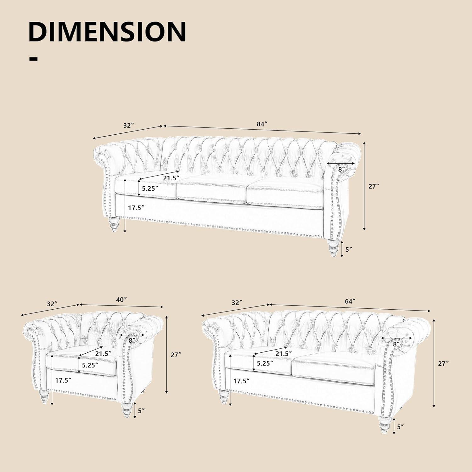 After spending considerable time with this 3-piece sectional sofa set, we can confidently say it strikes a strong balance between style, comfort, and practicality. The classic Chesterfield-inspired design-with its elegant button tufting and scrolled arms-adds an unmistakable touch of sophistication to any living space, whether it’s a cozy apartment or a larger living room. The ergonomically designed cushions, made with high-resilient sponge and doll cotton fill, provide firm yet supportive comfort that truly feels like a gentle embrace. We especially appreciated the deep seating space, which is perfect for hosting guests or even lounging solo for a midday nap on the 3-seat sofa.