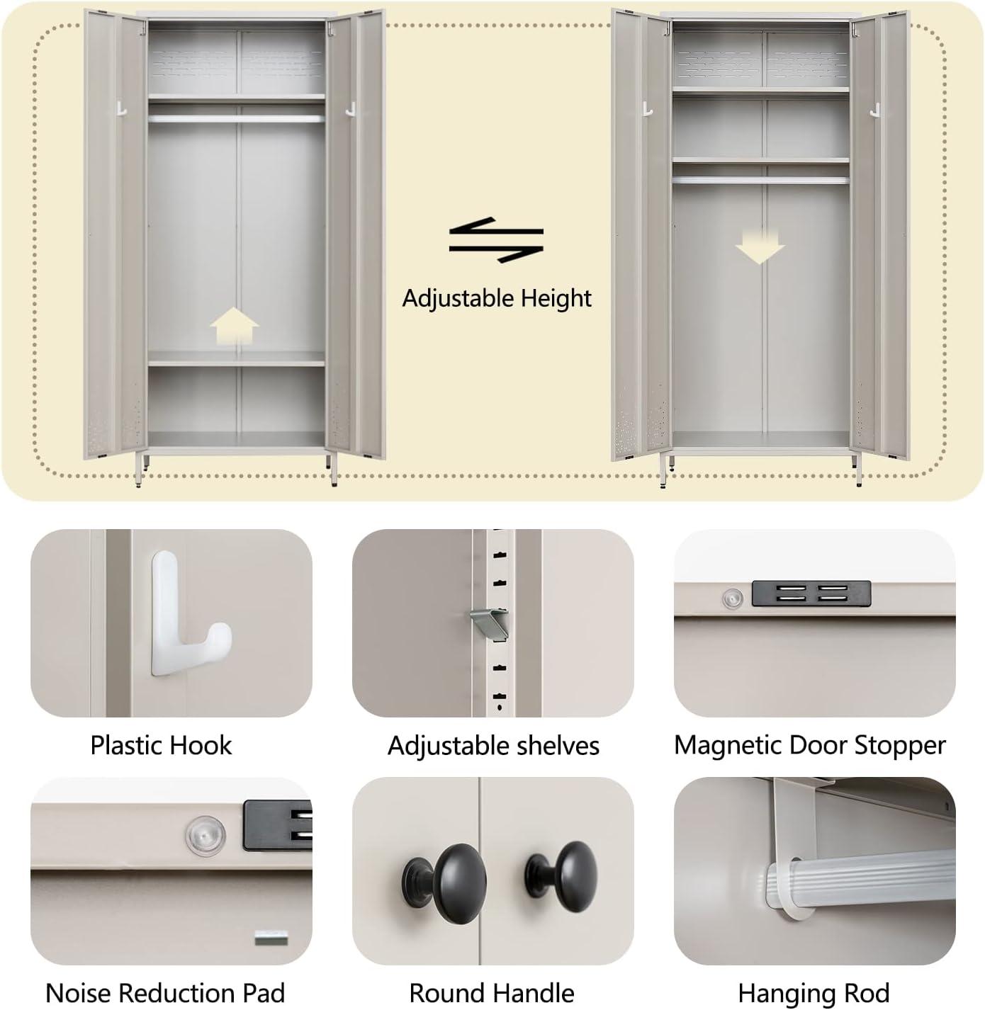 You notice, over time, how it eases into a corner and the half-formed routes of daily life, picking up small marks of use and learning the roomS rhythms. Living with the BESFUR Bedroom Armoires, Metal Wardrobe Closet with Hanging Rod, Adjustable Shelves, 20″ D x 31.5″ W x 74″ H – Sea Shell Color shows how surfaces soften where hands touch, how a shelf becomes the favored landing for a sweater, and how edges bear the slow fade of ordinary wear.As the room is used it quietly reshapes nearby habits — a lamp nudged closer, a chair pressed into temporary service — folding into everyday routines rather than calling attention to itself. In time it simply becomes part of the room.