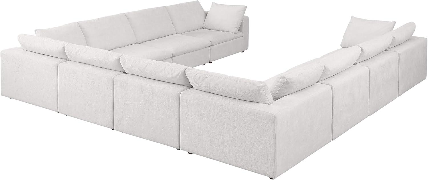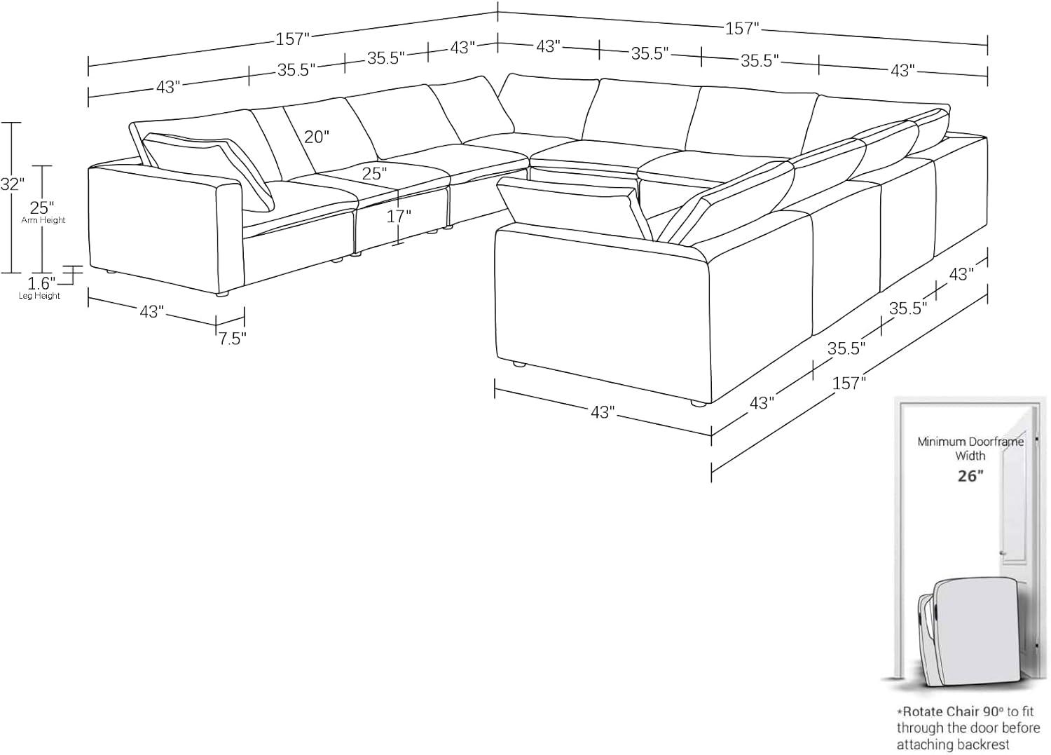 When you first see the BlackJack Furniture Dante 10 Piece U Shaped Modular Sectional in your living room, its broad, low profile reads less like a single sofa and more like a relaxed, low-walled lounge. Up close the Genuine Belfast fabric feels slightly napped and linen-like under your hand, and the feather-down cushions give with a quiet, pillowy sink before pushing back just enough. You notice a gentle firming where your lower back meets the cushions, and the solid Brazilian‑wood edges lend a restrained visual weight to the piece.The ten modular sections change the sightlines as you move around the room, so it settles into the space with a lived-in presence rather than shouting for attention.