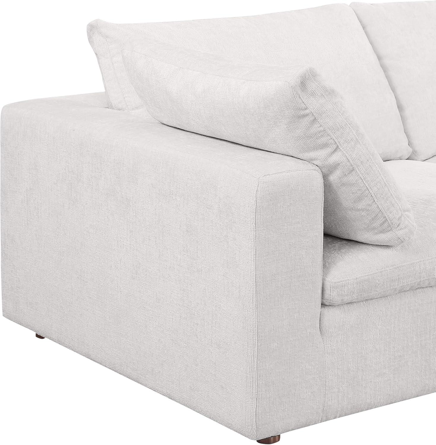 When you approach the sofa, the first thing you register is how the volumes relate to one another: the seating plane sits comparatively low against the height of the back, and the arms read as slightly squared rather than tapered. As you sit and shift, those relationships become more obvious — the back rises just enough to cradle without overtaking the profile, and the seat depth gives the impression of roominess without appearing oversized. Your hands will find the seams and corners: the cushions tuck neatly into their frames, though you may smooth a corner or two after someone has leaned a knee against them. The joins between modules sit flush moast of the time, and they can momentarily separate or compress in everyday use, subtly changing the silhouette.