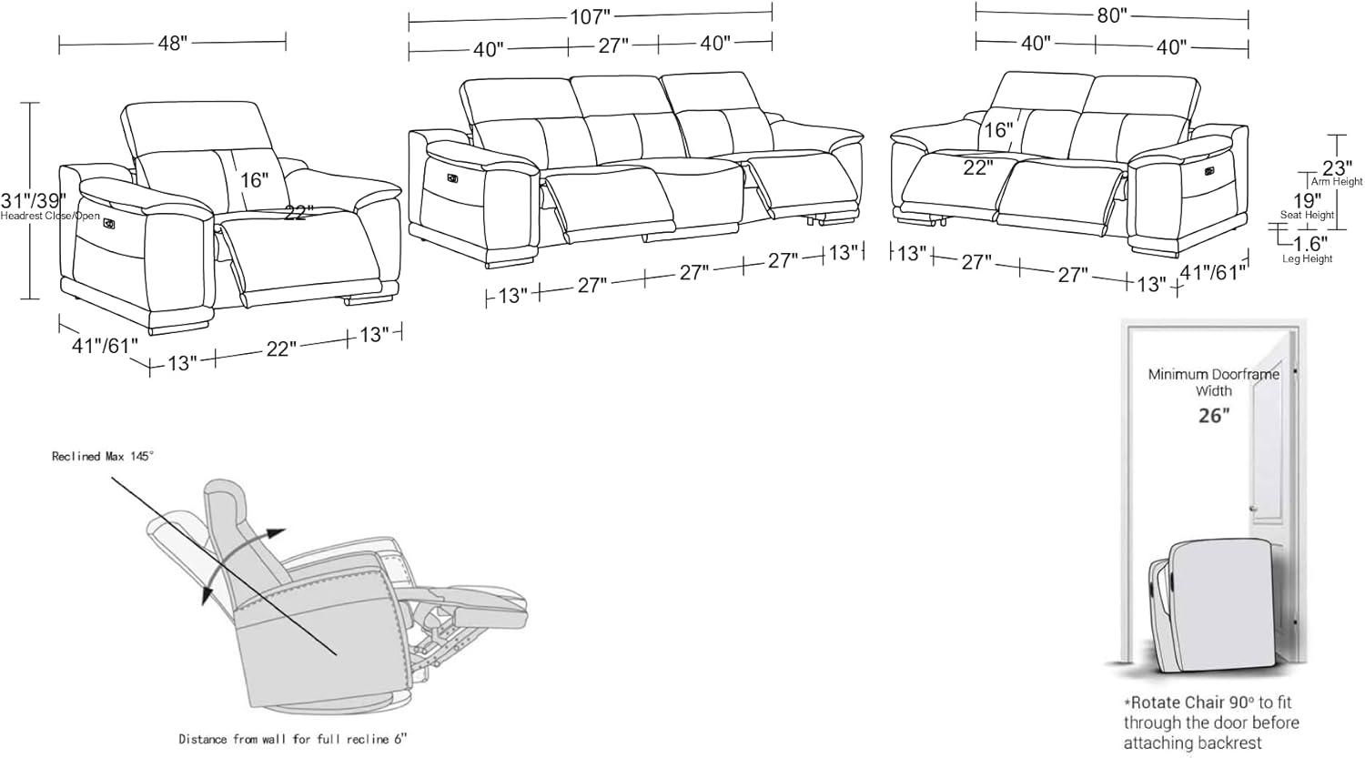 | Infinite power recline positions | Transitions are smooth and nearly continuous; small positional adjustments are easy during TV viewing |