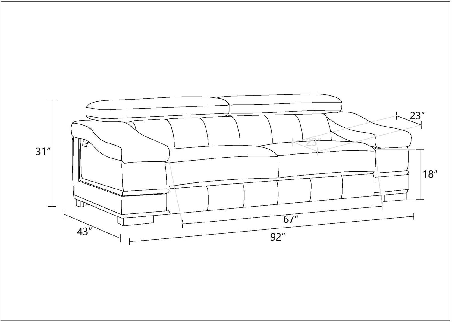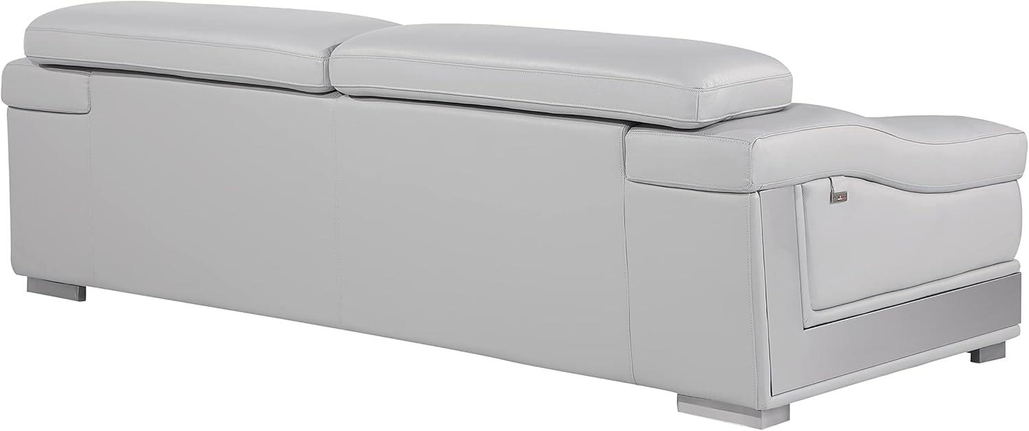 When curating a contemporary living room, this set effortlessly elevates the space with its sleek silhouette and sophisticated color palette.The rhino gray Italian leather upholstery exudes understated luxury, perfectly complemented by polished metal trims that add just the right touch of modern edge. The substantial yet streamlined form balances wide, spacious cushions with a robust metal base and solid wood frame, demonstrating how durable craftsmanship meets refined elegance. Adjustable headrests enhance the design’s functionality, allowing us to customize comfort without compromising style.