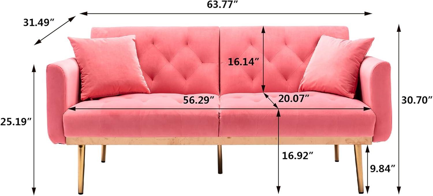 This loveseat blends a soft,velvet surface with a compact,convertible design so it can move between your living room,office,or a tight apartment corner without feeling out of place. You can use it as a cozy two-seater by day and flatten or recline the backrests into different positions for naps or overnight guests—each backrest adjusts independently into three settings. Materials and build are pitched toward everyday use: the polywood frame, five metal legs and a 600 lb capacity mean it handles more than solo lounging, while the included pillows and gold-toned feet add a low-effort touch of style.