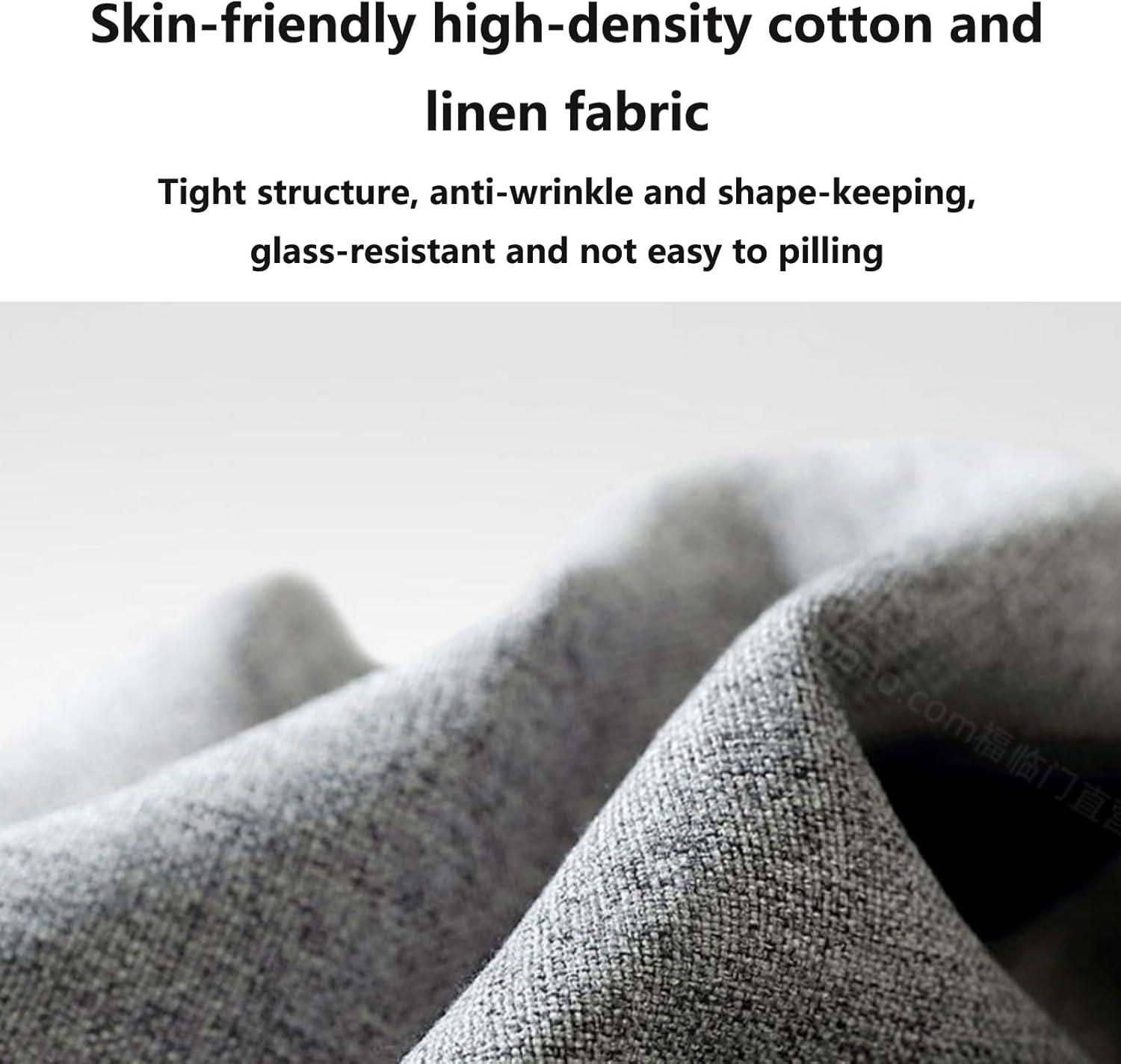 When you get close, the first thing that stands out is how the fabric wraps the geometry of the piece: the cotton-and-linen cover lies smoothly across broad surfaces but gathers slightly where the frame changes direction — around arm junctions and the back corners. You’ll notice a narrow, concealed opening along the lower rear seam that gives access to the inner layers; it sits flush most of the time but can gape a little when you lift the sofa to move it. Running your hand along the edges, the stitching and seam allowances are where tension shows first — small puckers or tiny fold lines appear if you smooth the fabric after someone has been sitting. The cover slides a bit against the foam when you shift position, and you probably find yourself coaxing the fabric back into place now and then so the surface looks even again.