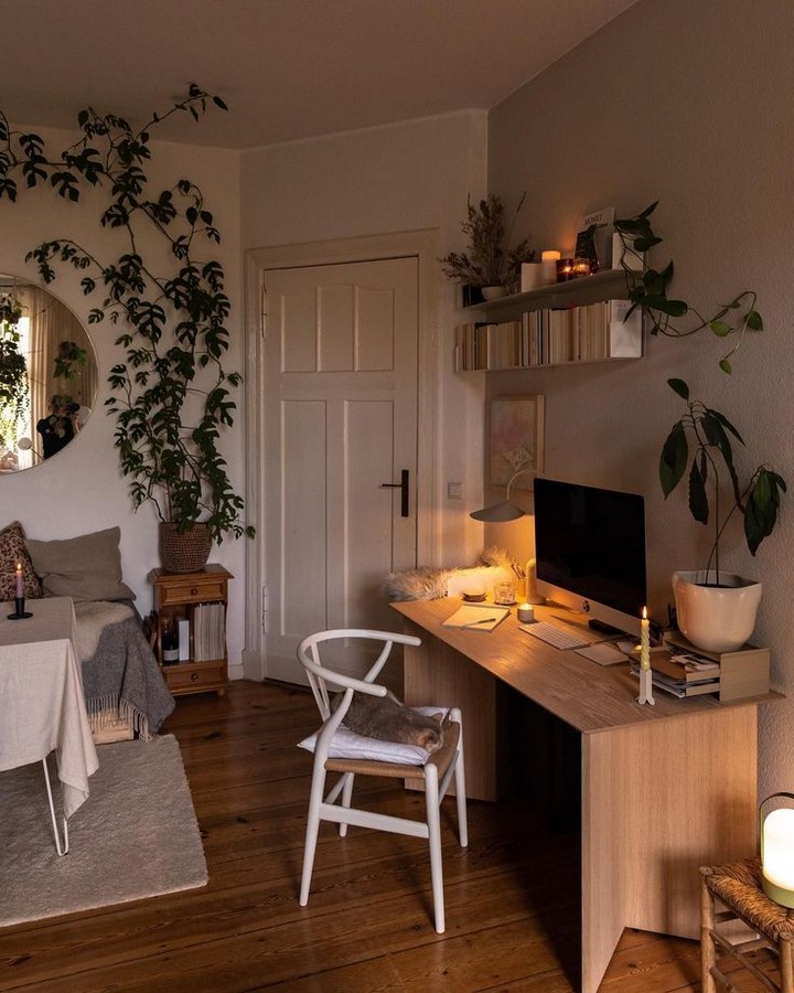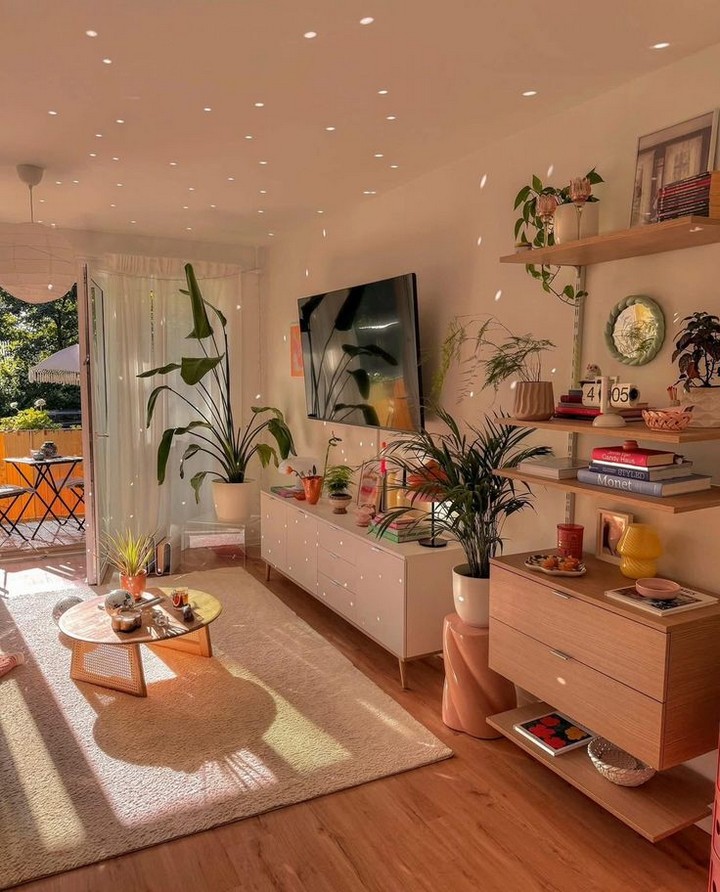 Mount floating shelves to showcase books, curated collections, or miniature plants. These provide efficient storage while contributing to the room’s overall charm.