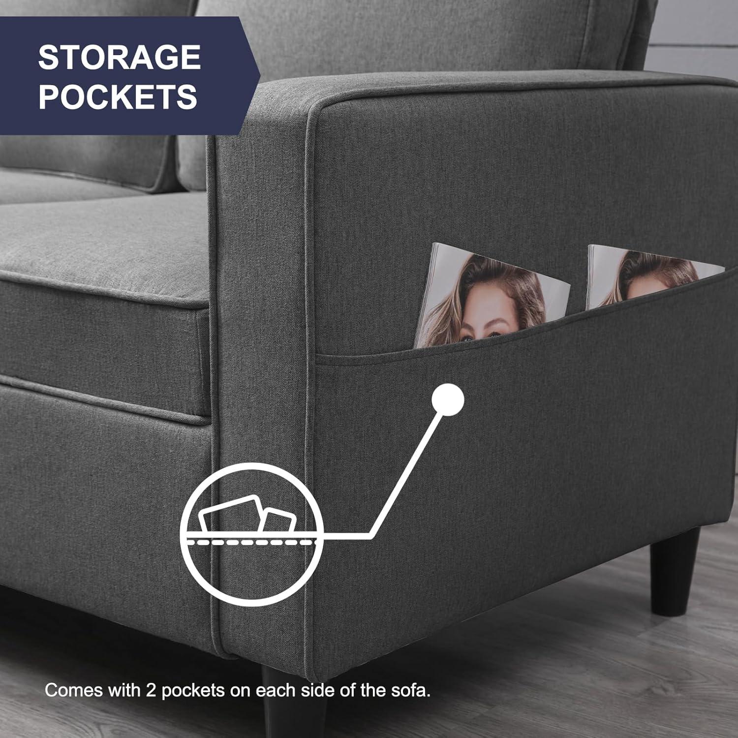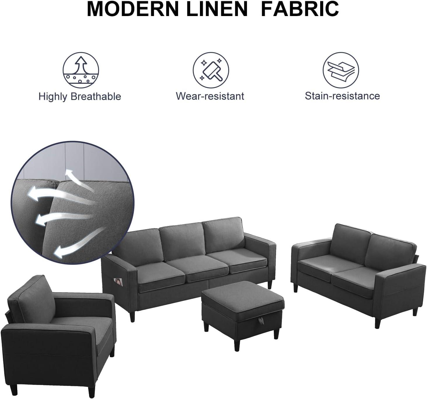 Our first impression of this sofa set was its elegant yet cozy design, perfectly blending modern style with everyday comfort. The dark grey linen fabric feels soft to the touch while proving to be remarkably durable and stain-resistant, which quickly became a necessity given our active household with kids and pets. Not only does the high-density foam provide firm yet plush seating, but the addition of mesh bags on the backrests noticeably enhances support, making longer lounging sessions more pleasant. The wooden legs contribute a solid foundation, giving the entire set great stability and a timeless aesthetic.