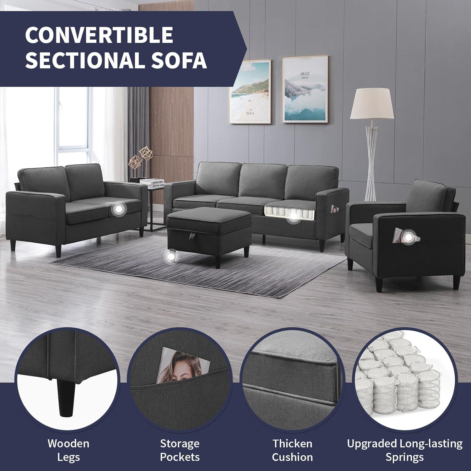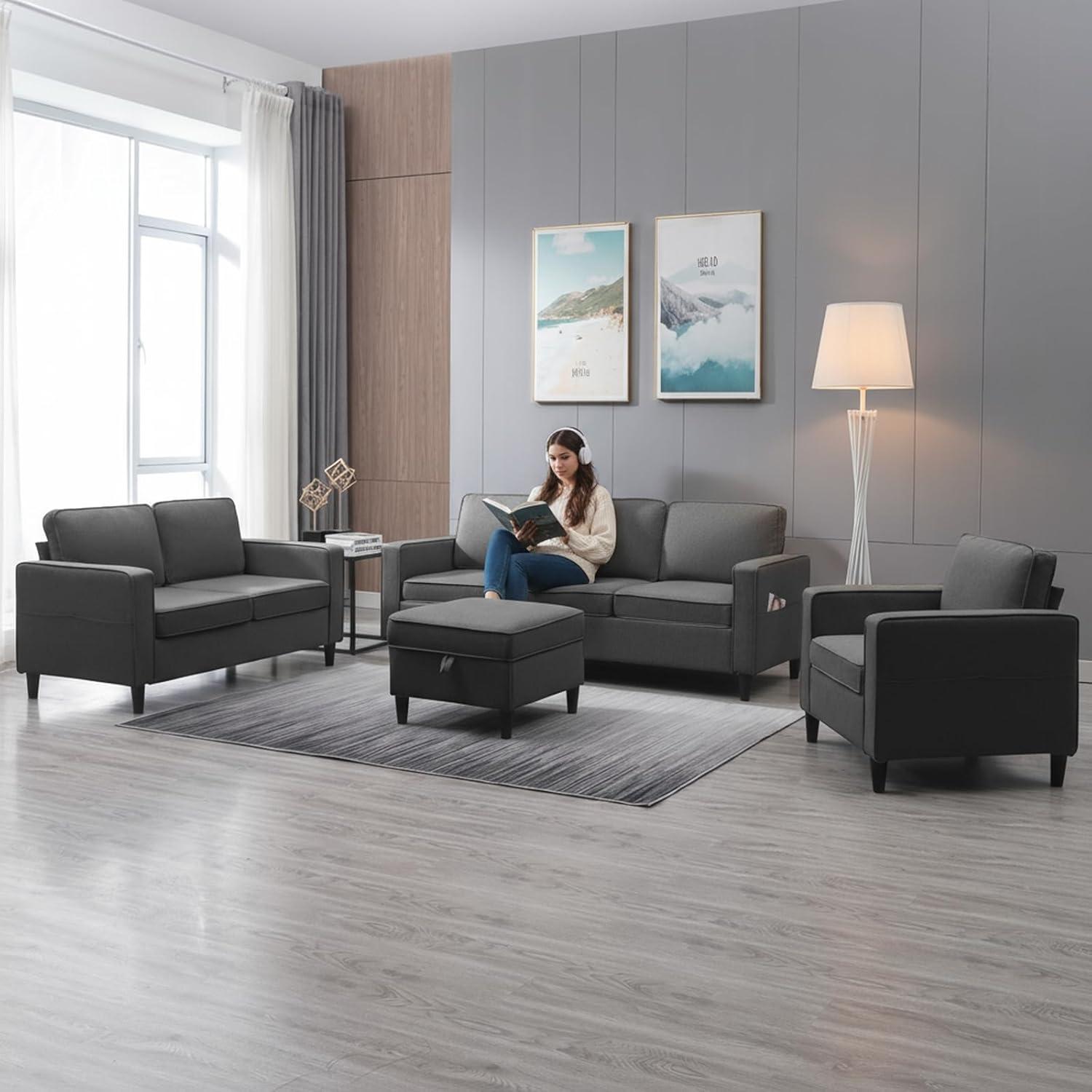 this sofa set impresses with its adaptability, durability, and thoughtful design touches like storage pockets that elevate everyday living. While it requires some assembly and leans toward firmer seating, the dark grey linen fabric and modular layout make it a timeless, practical choice for cozy, functional living spaces.