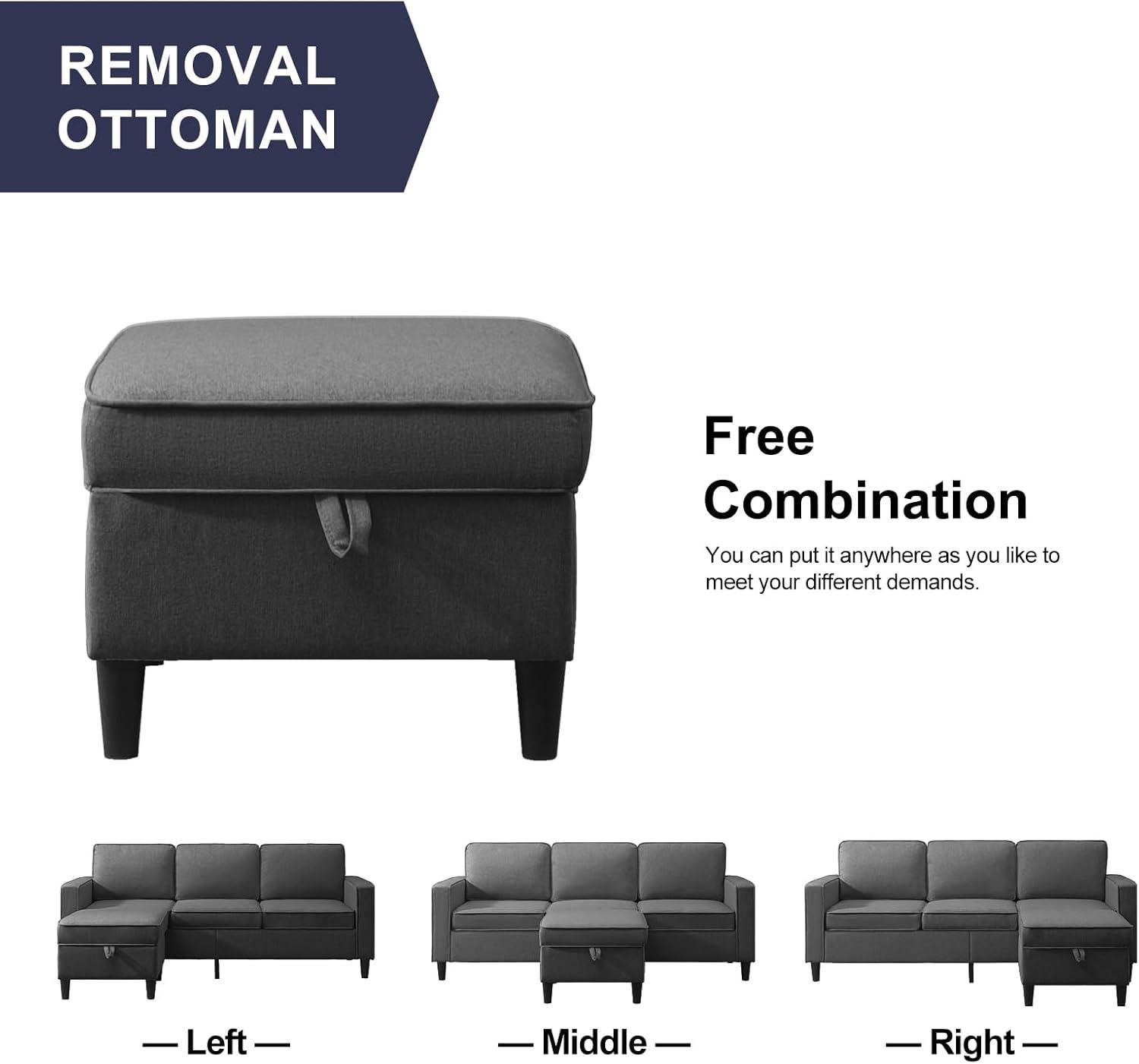 | Modularity | Ottoman can be moved left or right | Fixed sectional pieces |