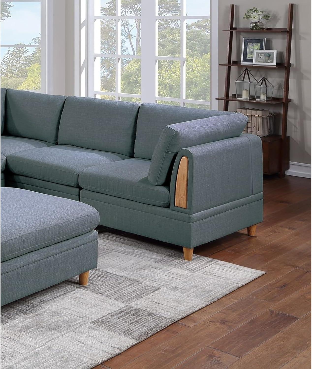 After spending ample time with this sectional set, we appreciate how effortlessly it blends comfort and contemporary style. The steel grey fabric paired with wooden accents creates an inviting atmosphere without overwhelming the room. Its modular design, featuring three wedge sections, two armless chairs, and an ottoman, allows flexible arrangements tailored to various living spaces and entertaining needs. The plush cushioning and clean back design ensure lasting comfort during gatherings or quiet evenings, while the cocktail ottoman provides a multifunctional piece ideal for lounging or serving as a footrest.
