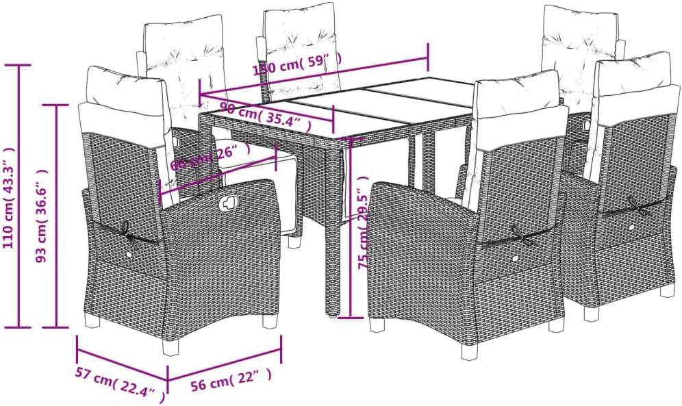 Paired with six cushioned chairs-each supporting up to 242.5 lbs and featuring adjustable backrests and footrests-the set balances comfort and versatility. The weather-resistant PE rattan and powder-coated steel frame ensure that the table and chairs withstand changing seasons without losing their charm. Maintenance is simple, too, with a wipe-clean tabletop and removable cushion covers for hassle-free cleaning.