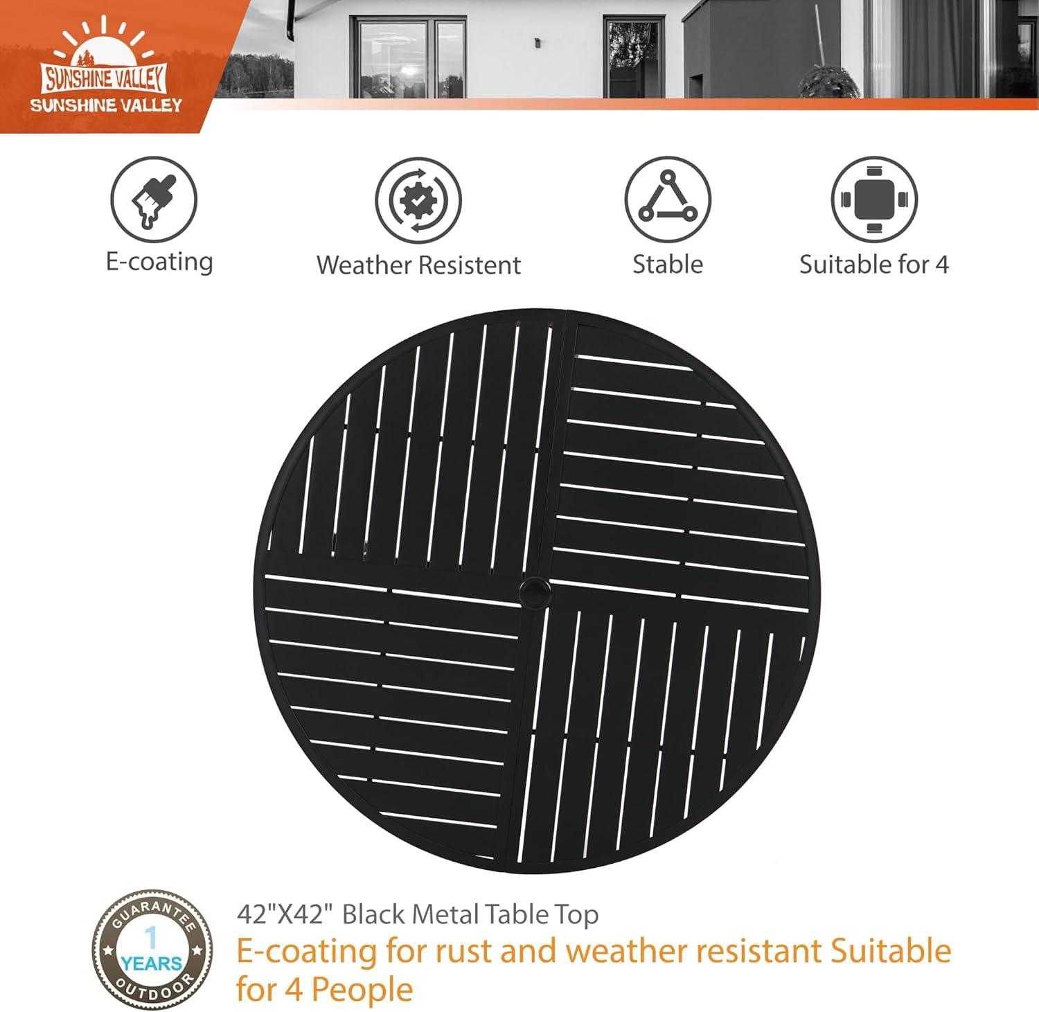 The round patio table’s 42-inch black slatted surface is both stylish and practical. The slat spacing efficiently drains water and debris, reducing cleaning hassles, while the integrated 1.57 to 1.9-inch umbrella hole fits most umbrellas, allowing us to create pleasant shaded spots. Combined with dual rust-prevention coatings-E-COATING and POWDER-COATING-this set promises longevity with minimal maintenance, even when exposed to changing weather conditions. Assembly was straightforward thanks to well-packaged tools and clear instructions, making setup hassle-free.