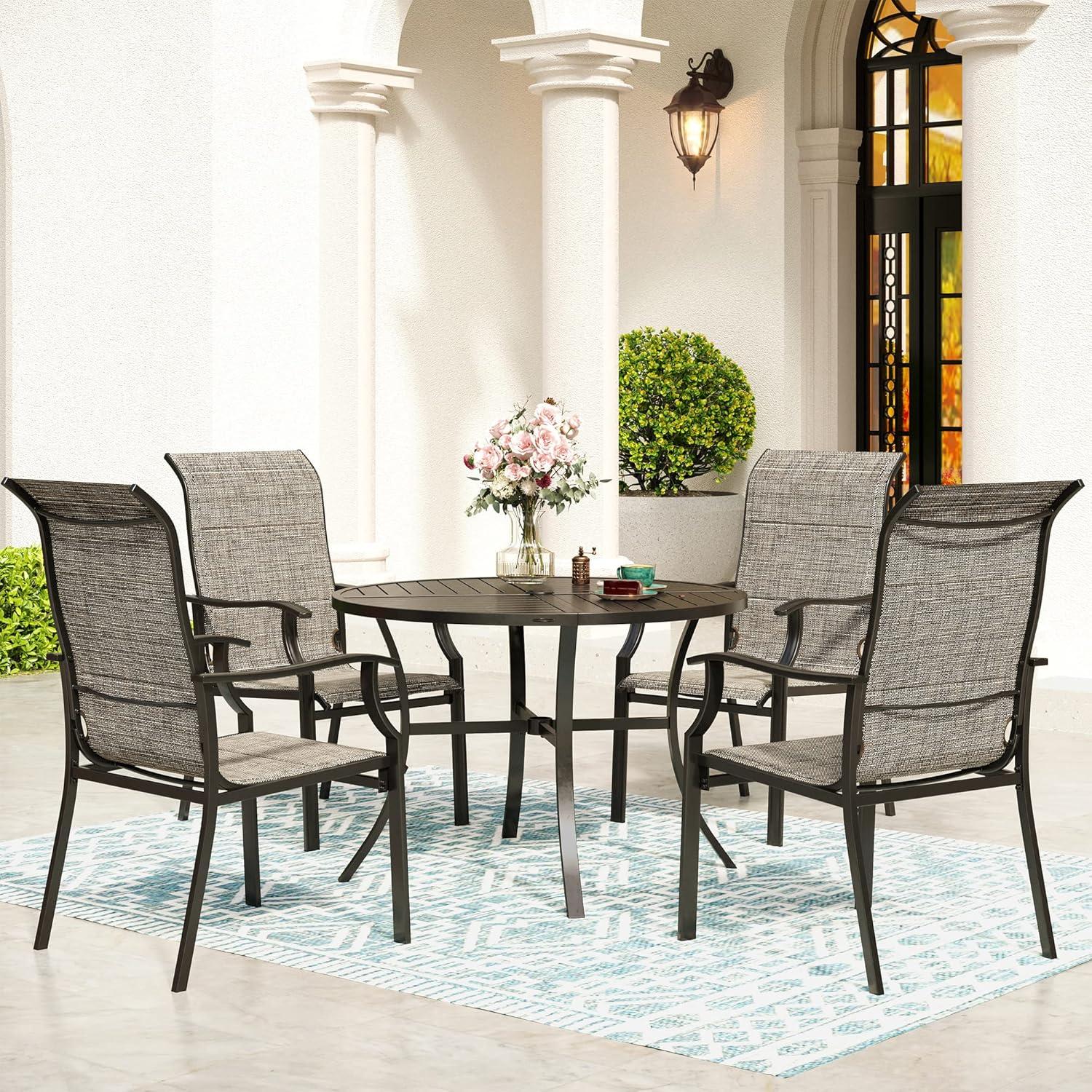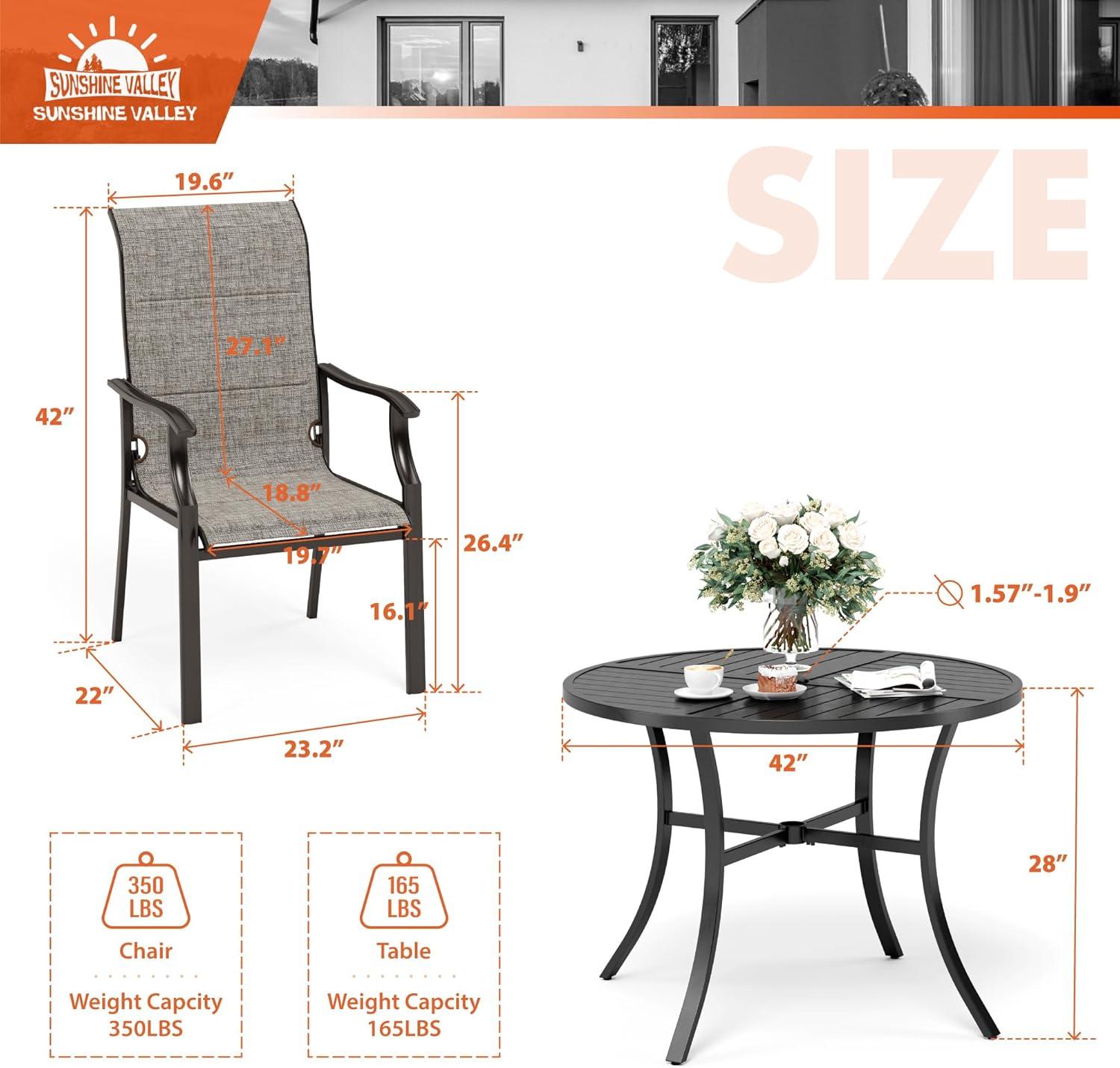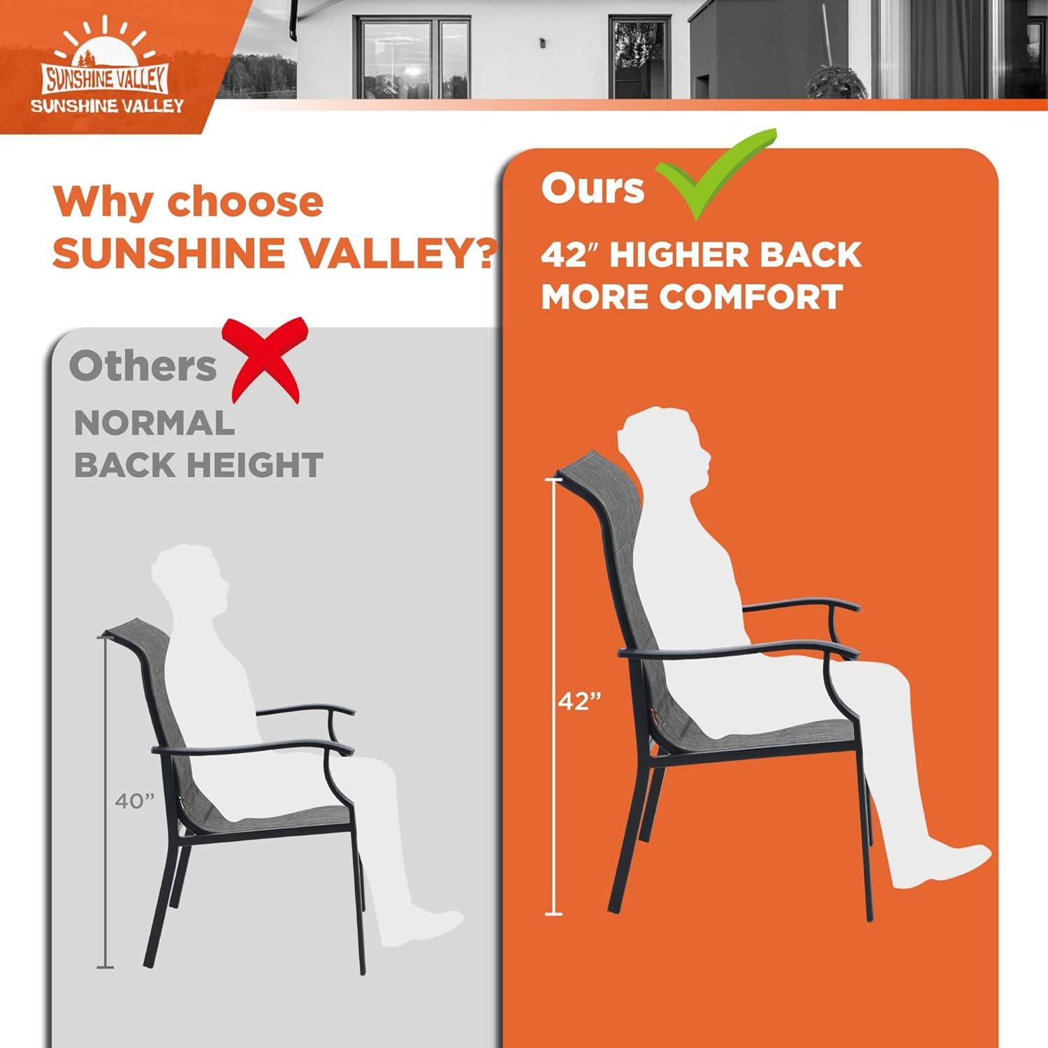 When evaluating this set against other outdoor dining alternatives, several features stand out. The high seat back design-42 inches, notably taller than many competitors-ensures superior upper body support, providing enhanced comfort during extended outdoor meals. The patio chairs are crafted with upgraded all-weather Textilene fabric, which is thicker, denser, and more breathable than typical outdoor chair materials. This results in a seating experience that balances durability with comfort, resisting fading, dirt, and moisture while drying quickly after rainfall. Many similar sets offer weather resistance but often lack this advanced fabric technology, which significantly extends the lifespan and ease of maintenance.