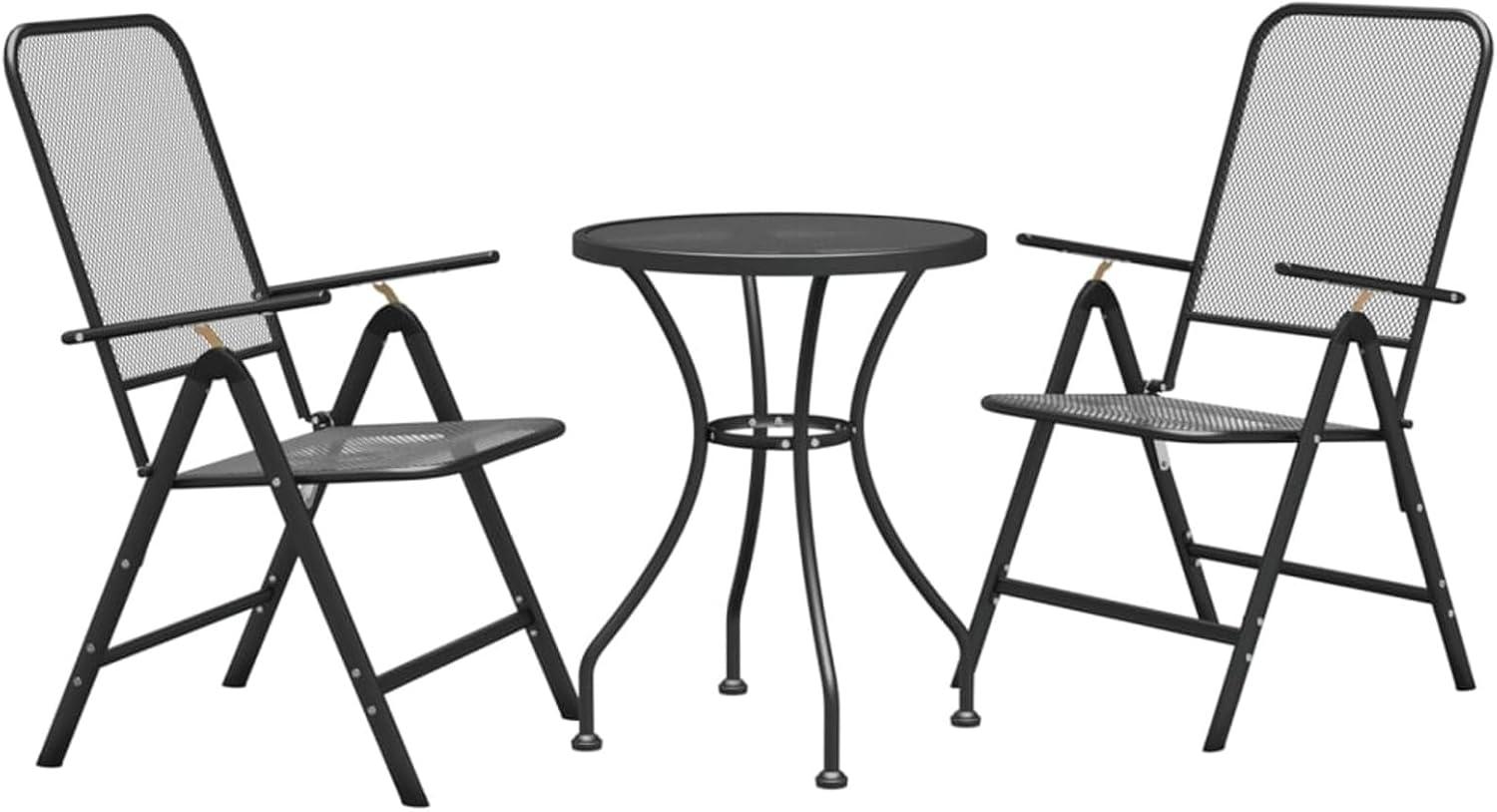 After spending time with this outdoor dining set, we appreciate its combination of style and practicality. The anthracite finish and expanded metal mesh design not only add a contemporary touch to any outdoor space, but also ensure durability and ease of maintenance. The compact size makes it a perfect fit for terraces, balconies, and small backyards, providing comfortable seating without overwhelming your area.Assembly is straightforward, and the sturdy construction gives us confidence in its longevity, even when exposed to outdoor elements.