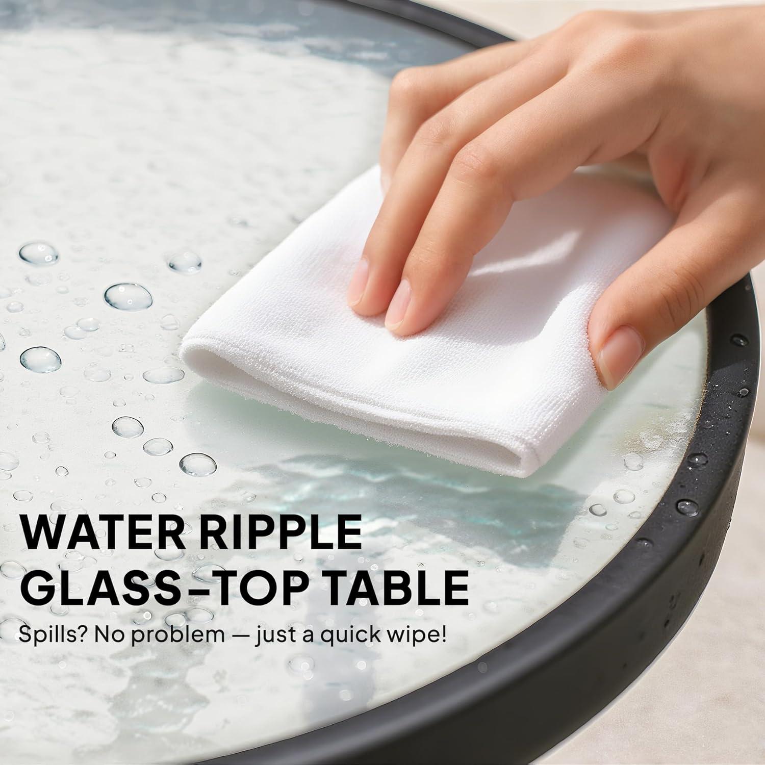 Enjoying Meals Around the Wave Textured Tempered Glass Table