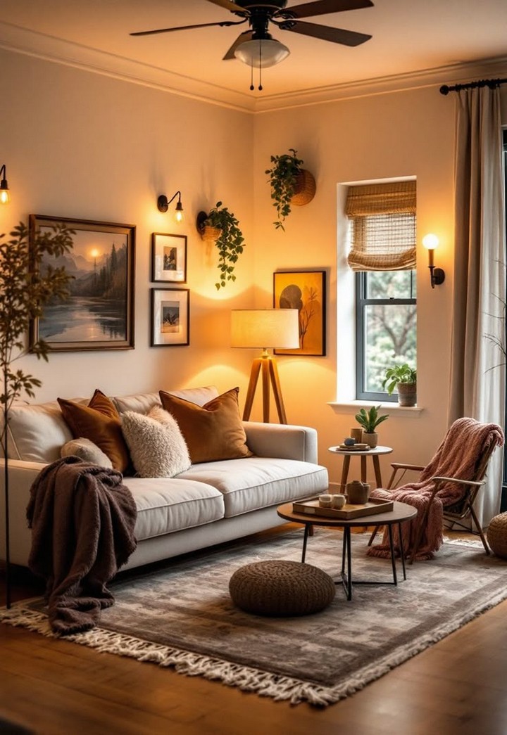Rugs, cushions, curtains, and throws introduce softness and personality, making the room more inviting without overwhelming it.