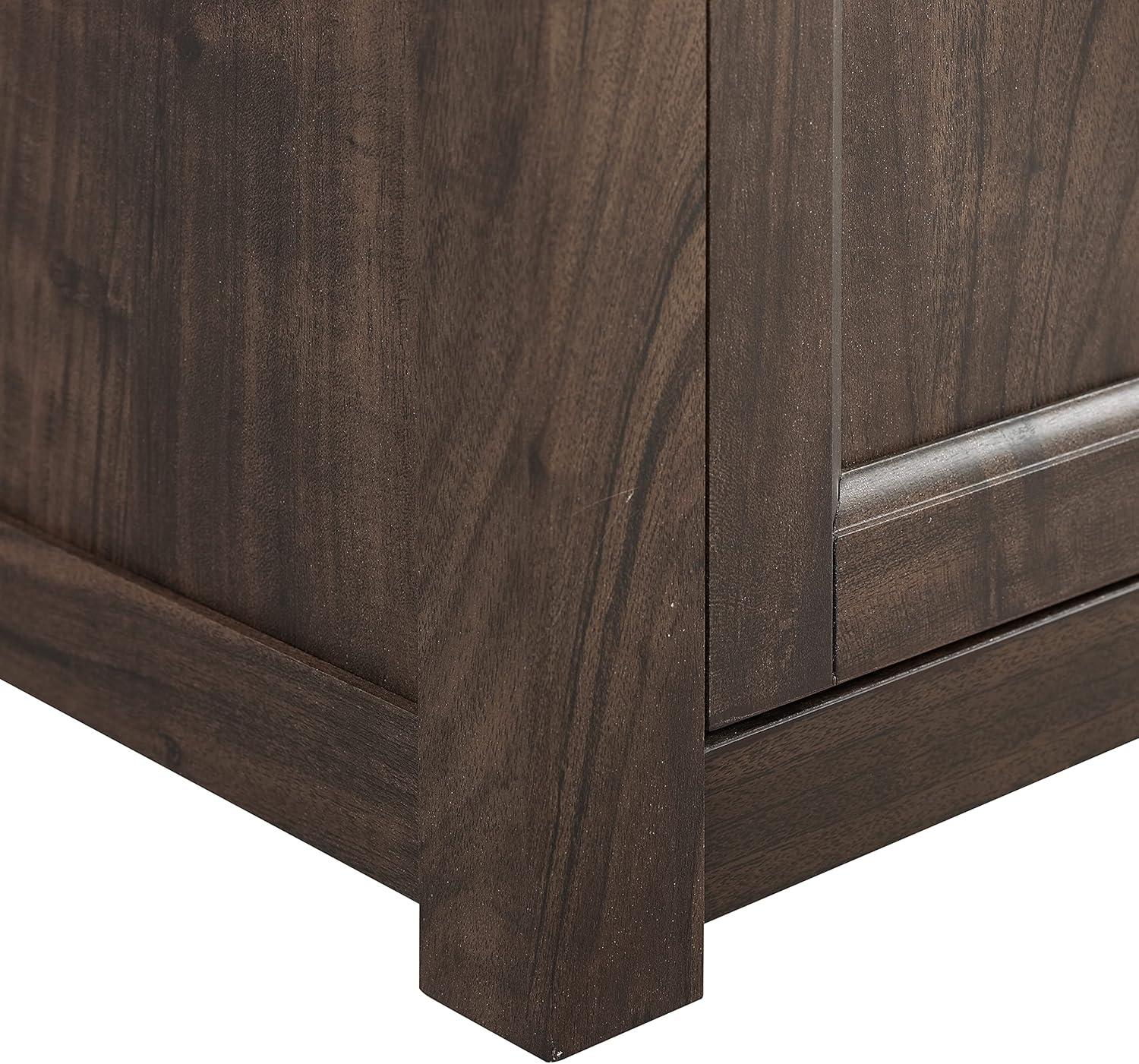 After a few weeks you notice how the crosley Furniture Camden Corner TV Stand for 65+ inch TVs,Entertainment Center with Storage Shelves,Dark Walnut settles into daily routines,its shelves quietly gathering the small objects that always seem to reappear. In regular household rhythms the surface shows the soft wear of use,mugs leave faint rings,and the arrangement of remotes and books shifts with comfort and habit. As the room is used it becomes part of the background of your days, a steady presence in the ordinary movements of the household. Over time it simply becomes part of the room.