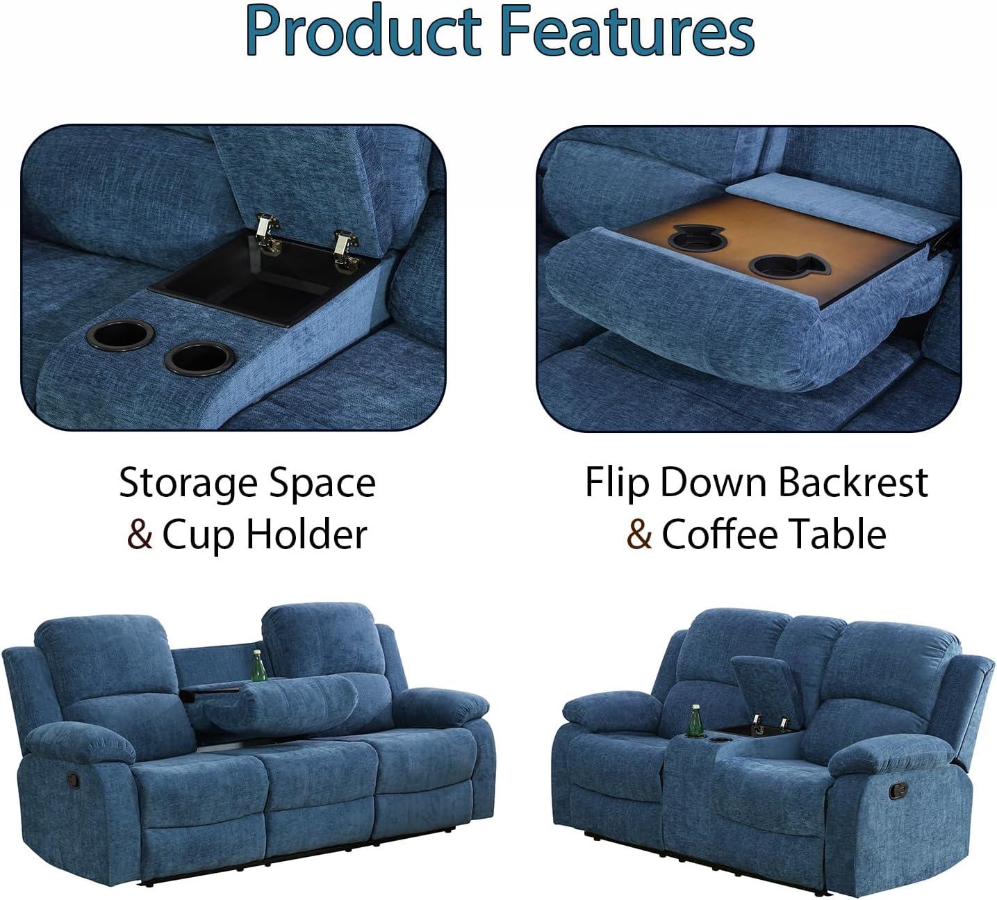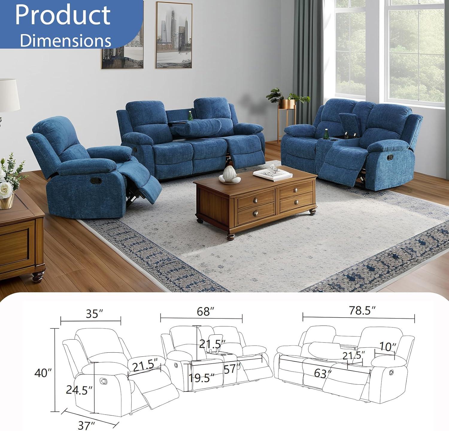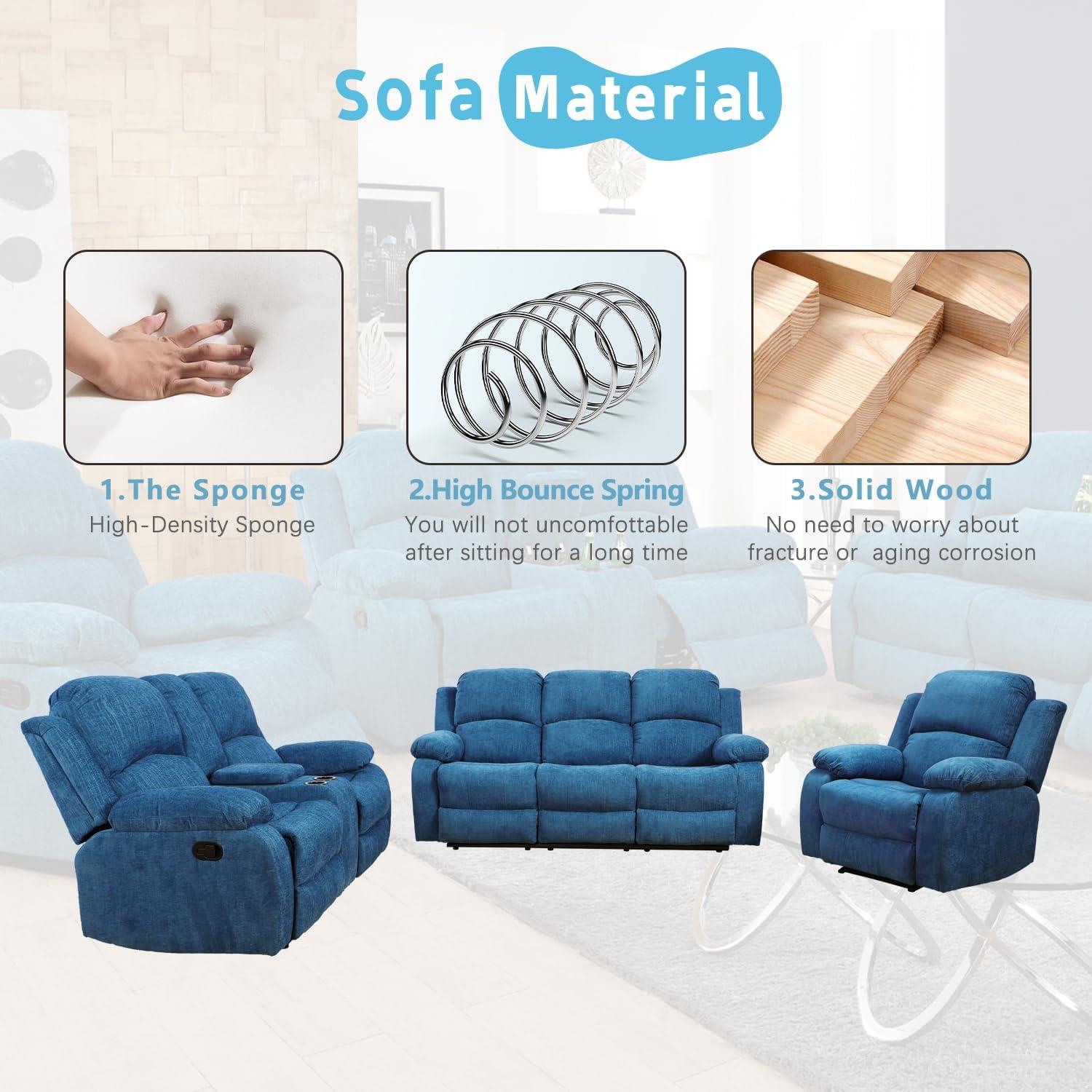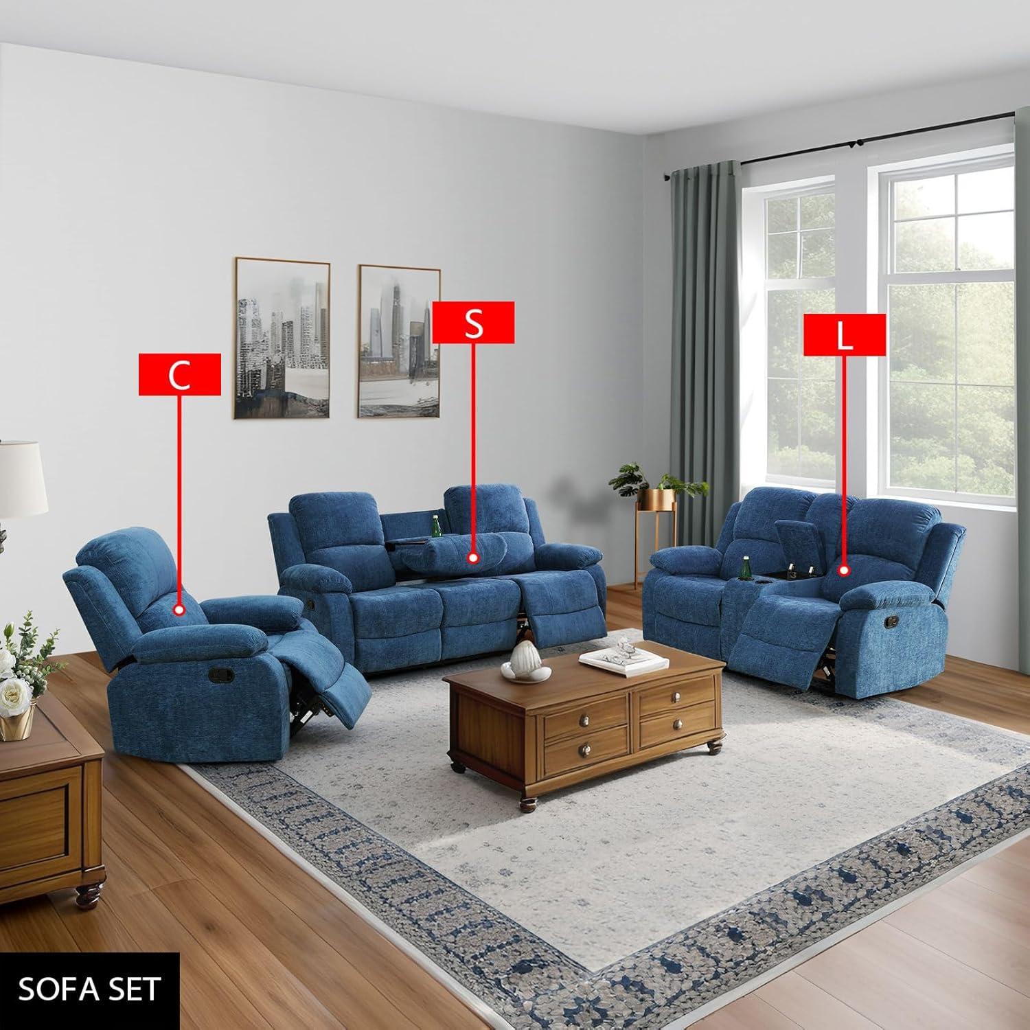 Our living spaces deserve furniture that blends comfort, style, and practicality, and this three-piece recliner sofa set delivers just that. upholstered in soft, breathable flannel fabric in a soothing light blue hue, this set brings a calm yet vibrant presence to any room. The adjustable reclining feature caters to every mood-whether we want to sit upright for a chat, recline for a movie marathon, or catch a speedy nap. Beyond comfort,the integrated cup holders and storage compartments offer a clever way to keep essentials within easy reach,eliminating the need to constantly get up and enhancing our leisure experience.