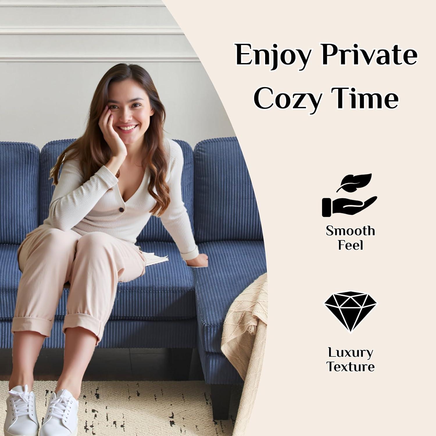 One of the most practical aspects of this sofa is its sturdy construction,combining a solid wood frame with metal legs that offer lasting stability. The non-slip foot pads cleverly protect both your flooring and the sofa itself from unneeded wear while reducing noise when you adjust its position. This ensures a quiet, scratch-free experience that’s especially critically important in apartments or office spaces. To keep it looking fresh, we recommend vacuuming the corduroy fabric regularly to prevent dust accumulation and gently spot-cleaning any spills with a damp cloth and mild detergent.Avoid harsh chemicals to maintain the fabric’s rich navy blue tone and soft texture over time.