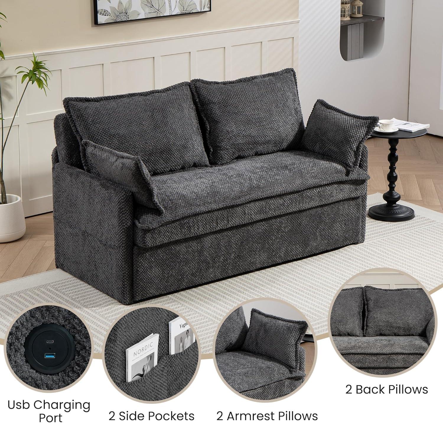 After spending time with this versatile piece, we appreciate how seamlessly it blends functionality and style, making it an excellent choice for those with limited space who don’t want to sacrifice comfort. The 3-in-1 design transitions effortlessly from a cozy loveseat to a queen-size sleeper,offering ample room for two adults without feeling cramped. The premium corduroy upholstery adds a touch of warmth and luxury, while the dense foam cushions deliver solid support whether you’re sitting or sleeping. We also like the thoughtful extras such as USB and Type-C charging ports along with side storage pockets, which elevate everyday convenience.