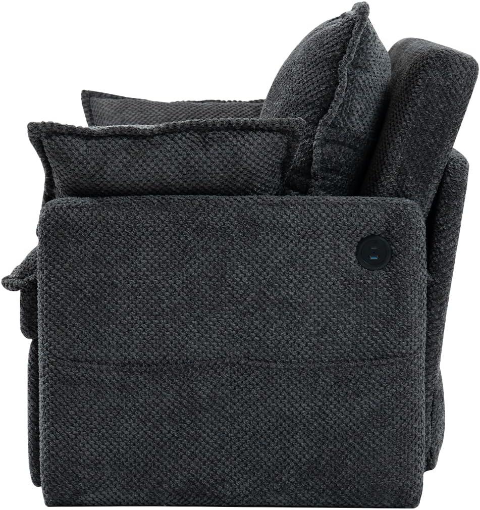 The dimensions and construction contribute considerably to the overall comfort, with seat depth around 19.3 inches and a height that’s just right for relaxing without feeling too low or stiff. The iron and plywood frame guarantee stability, supporting up to 300 pounds per seat. Plus, the loveseat’s multifunctional design-transforming easily into a sofa bed or recliner-means we never have to sacrifice comfort regardless of how we use it. Side pockets offer convenient storage, and the integrated USB and Type-C ports make it easy to stay connected while unwinding.