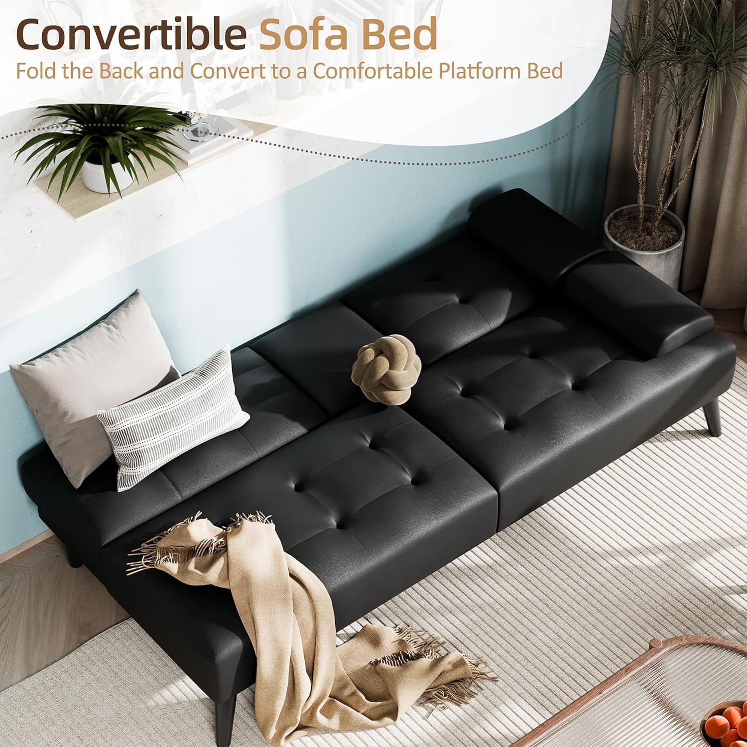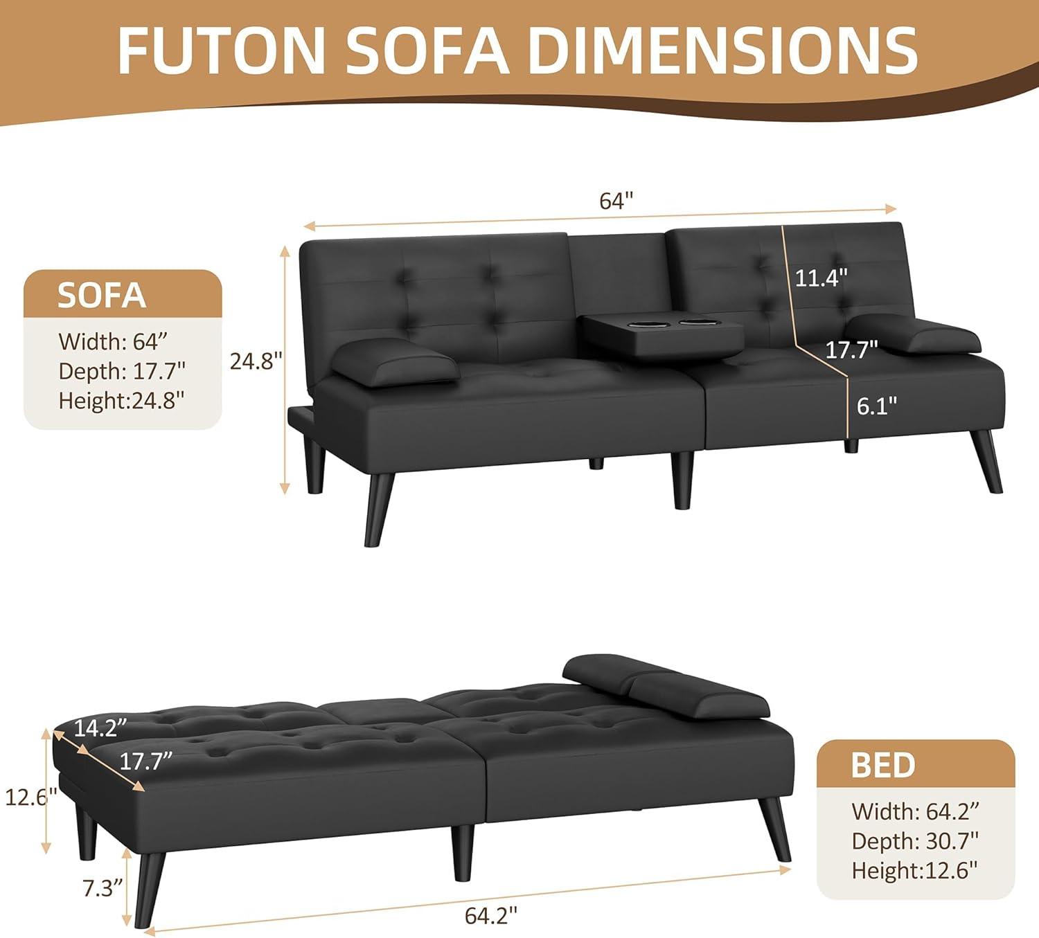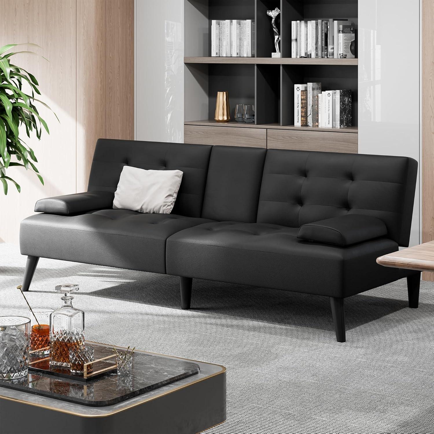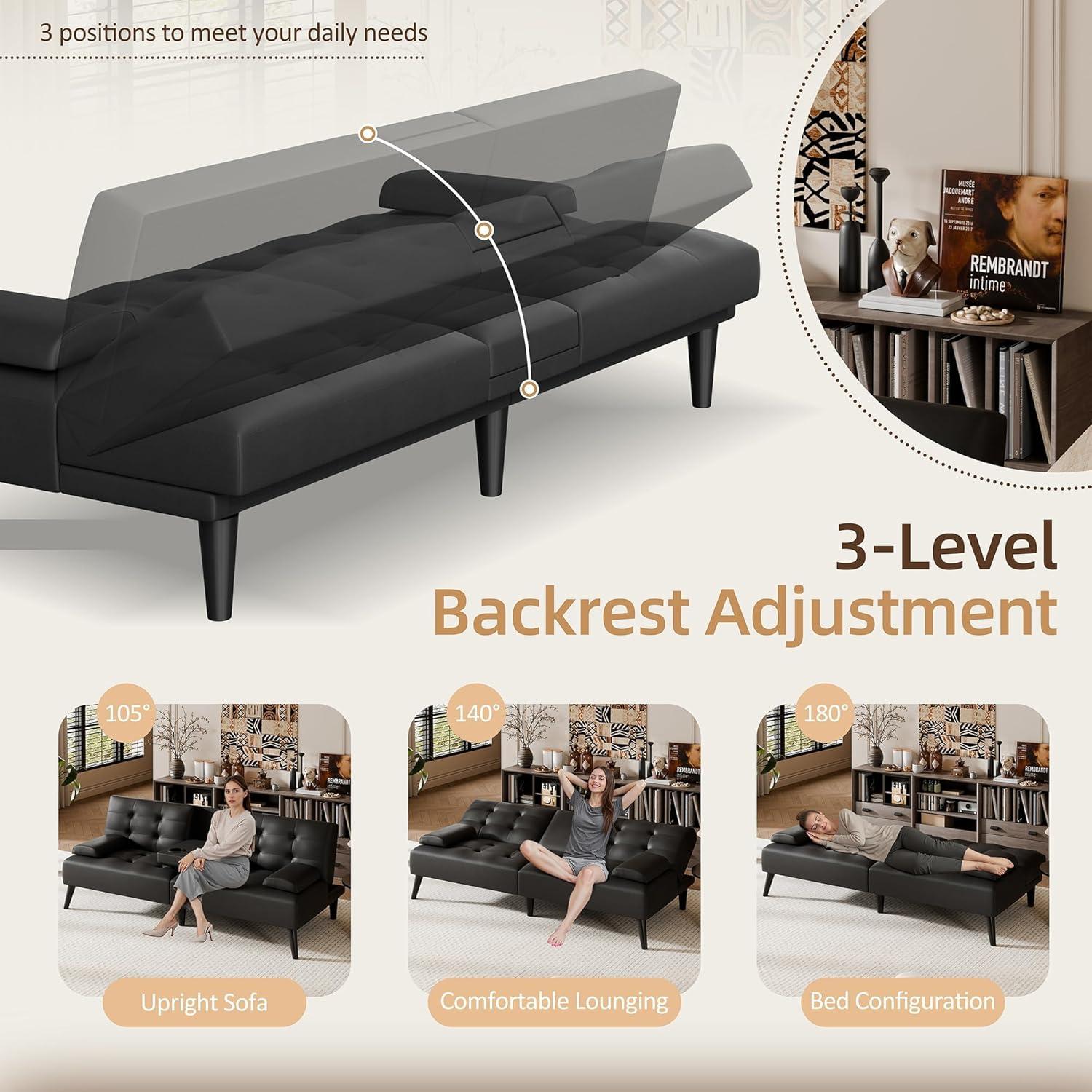 After spending ample time with this futon sofa bed, we can confidently say it strikes an notable balance between style, comfort, and functionality. The high-quality leather upholstery immediately elevates the look of any room, while the sleek black finish and minimalist design blend seamlessly into both home and office environments.We especially appreciated the 3-in-1 versatility-effortlessly switching between sofa, recliner, and sleeper modes. The adjustable backrest and reclining feature allow us to tailor the comfort to our exact preferences, making it perfect for lounging during the day or sleeping at night. Plus, the removable armrests add a practical edge, making it easier to adapt the piece for storage or a quick rearrangement.