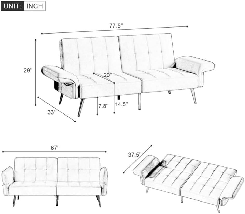 in our experience, this piece is thoughtfully crafted to maximize comfort without sacrificing precious square footage. Its compact length of 77.5 inches, with folded-down armrests, allows an adult to sleep without uncomfortable leg bending or awkwardly extending feet beyond the sofa. The thoughtful foam filling inside the armrests adds a plush softness, making it cozy enough to rest on overnight-a true bonus for small living areas where dedicated guest beds aren’t feasible. Plus, the storage bags attached externally to the armrests are incredibly practical, giving us easy access to remotes, magazines, or other essentials without cluttering the room.