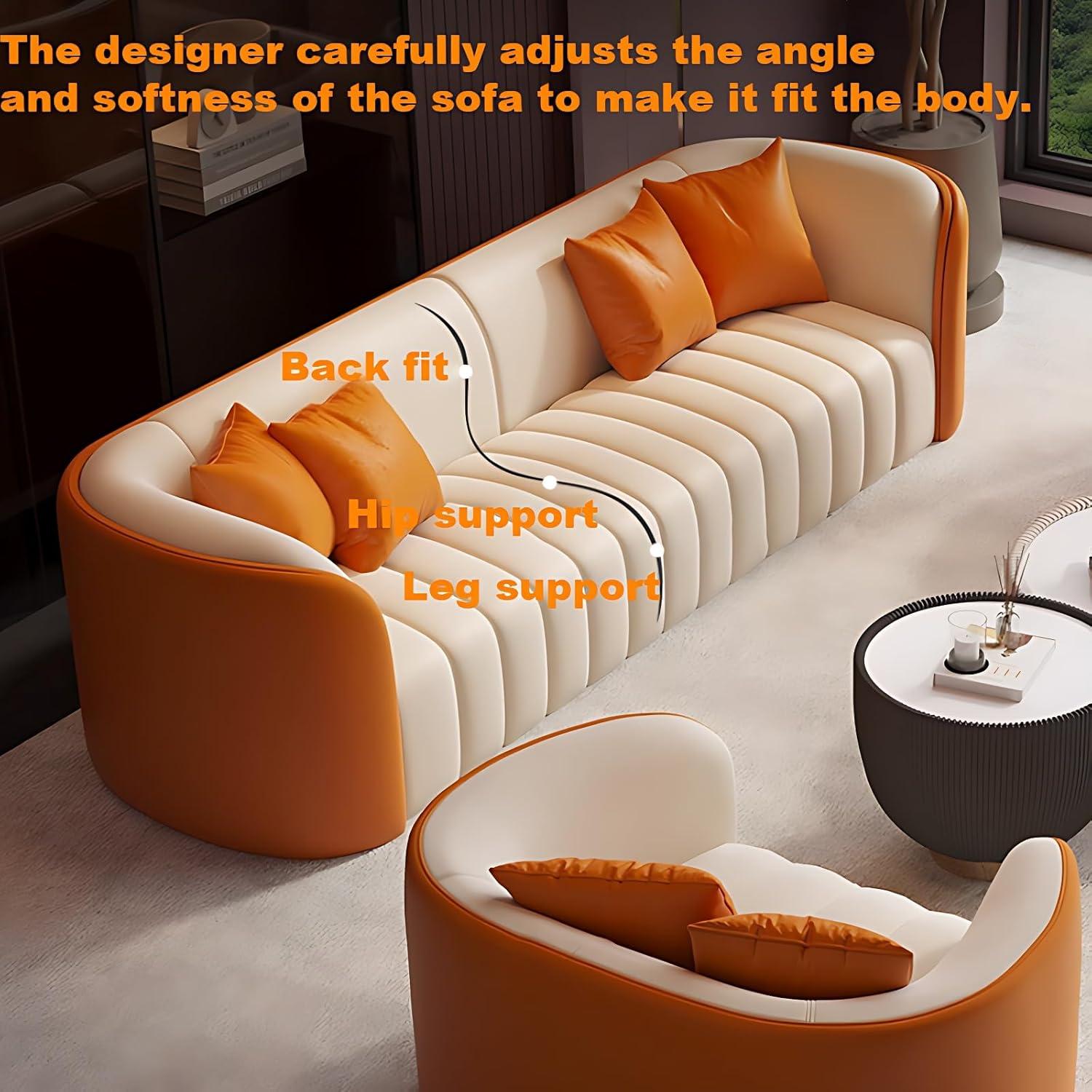 Our experience with the sectional reveals a remarkable blend of designer-driven comfort and luxurious materials. The curved design isn’t just aesthetic; it aligns intuitively with the body’s natural contours, inviting deep relaxation after a long day. Each wide seat is generously padded with a high-density, resilient sponge that feels plush yet supportive, ensuring comfort without sacrificing posture. The soft-touch leather upholstery elevates the look while proving to be durable and resistant to everyday wear, maintaining its smooth texture and color vibrancy even with regular use.