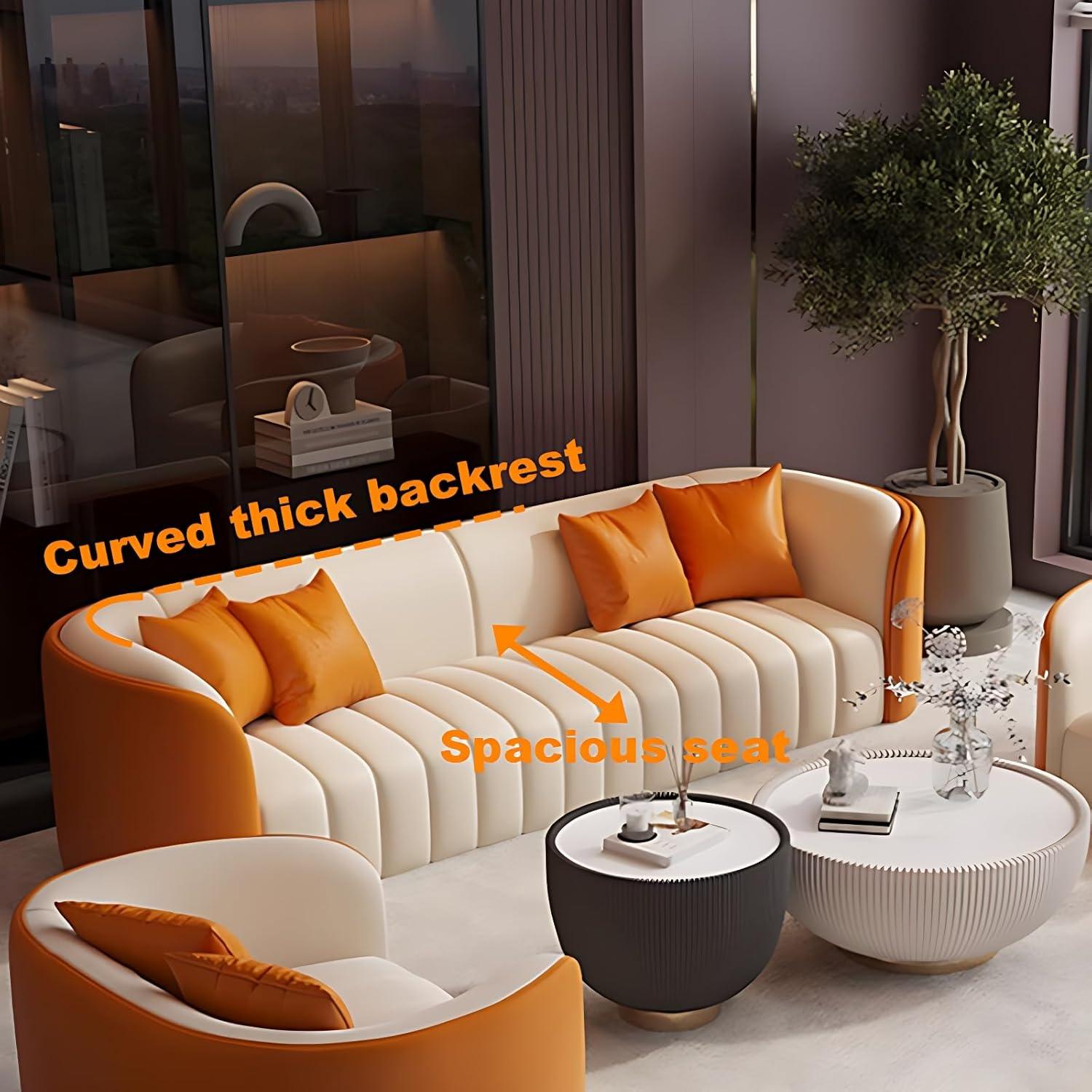 this sofa set impresses with its thoughtful design and quality craftsmanship. The curved contours not only elevate the aesthetic appeal but also provide exceptional ergonomic support, making lounging a true pleasure. Its premium leather surface, combined with high-density sponge seating, offers a balance of softness and resilience, holding up well against daily wear. The included coffee table integrates seamlessly, completing the living room setup with functional elegance. However, assembly requires careful attention to instructions, especially with securing the sections to prevent tipping and to avoid any accidents with its sharp edges.