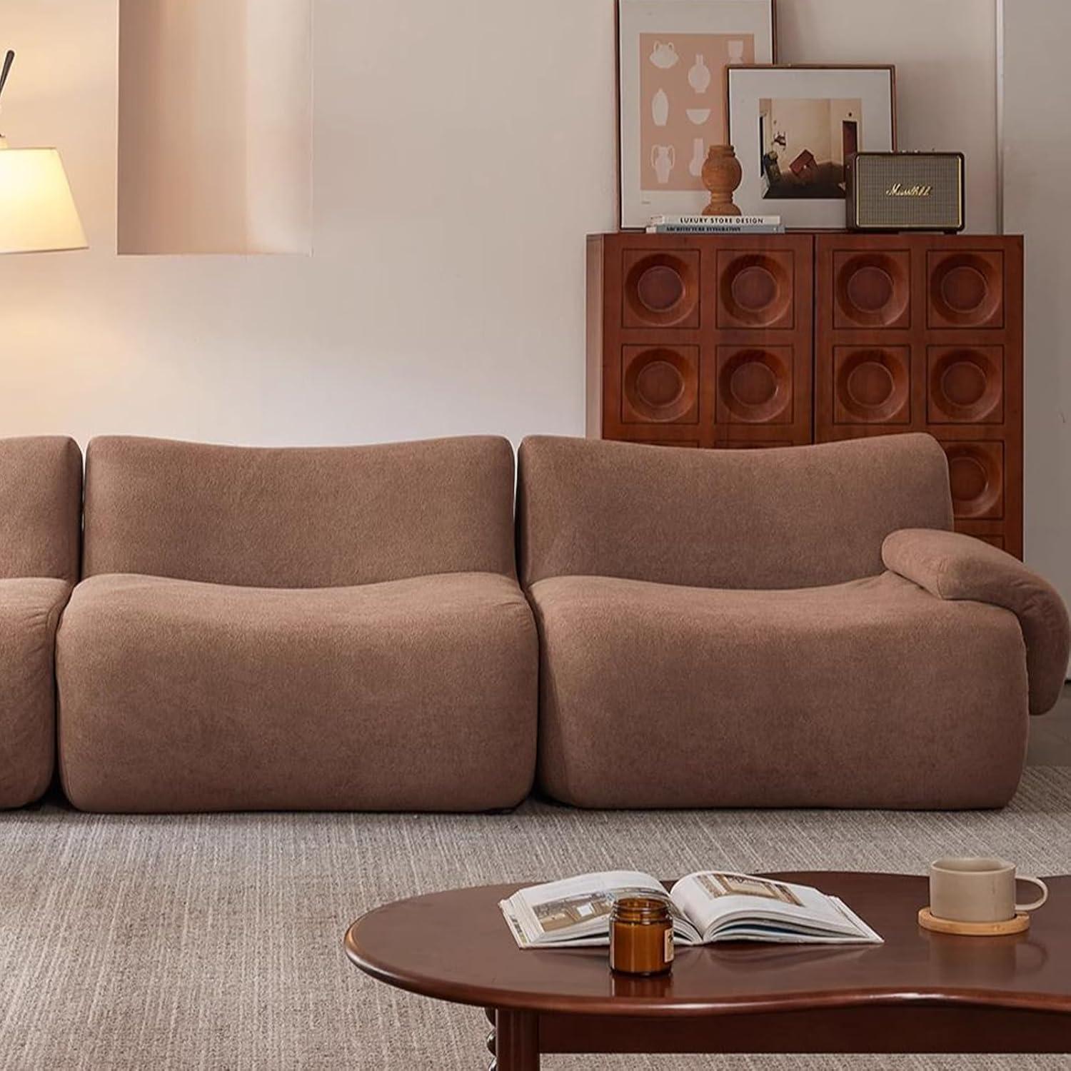 Styling versatility is where this piece truly shines. Thanks to its modular design, the sectional adapts effortlessly to different configurations and room sizes, making it a perfect fit for both compact apartments and spacious bedrooms. The curved deep seat and flowing bread shape design introduce unique visual interest and ergonomic comfort,serving well as a standalone accent or paired with complementary furniture. here are some benefits of its versatility: