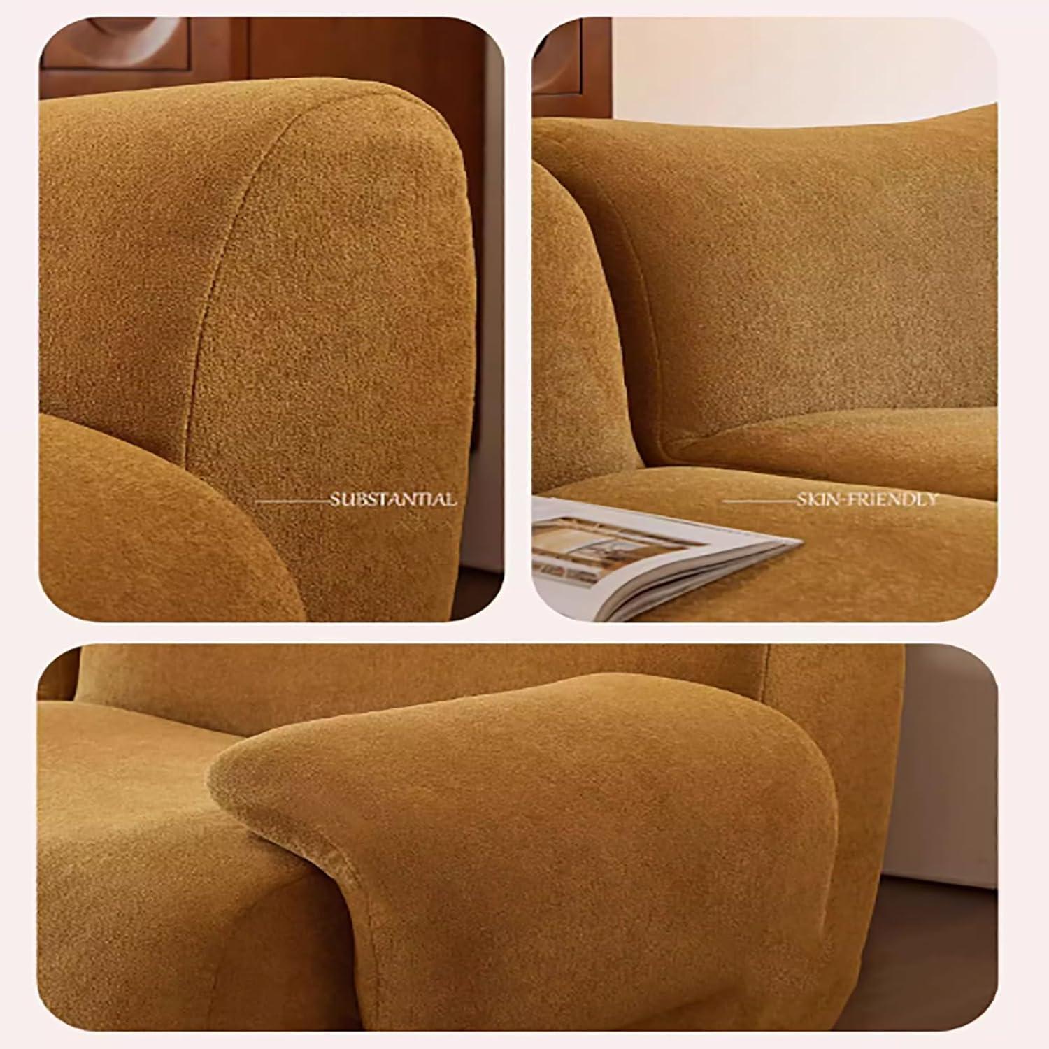 From the moment we arranged this piece in our space,its unique curved design promptly caught our attention,adding both style and comfort to the room. The smooth, milk velvet fabric feels incredibly soft against the skin, creating a cozy surroundings that invites relaxation. We were especially impressed by how the deep seat contours perfectly embraced our bodies, making it easy to unwind after a long day. The exquisite chenille weave adds a subtle tactile charm, enhancing the modern vibe without overpowering the overall décor.
