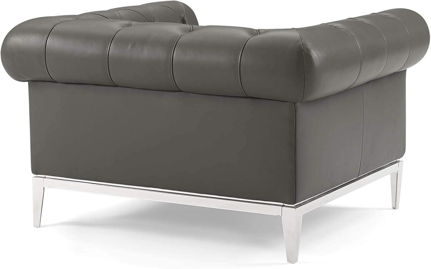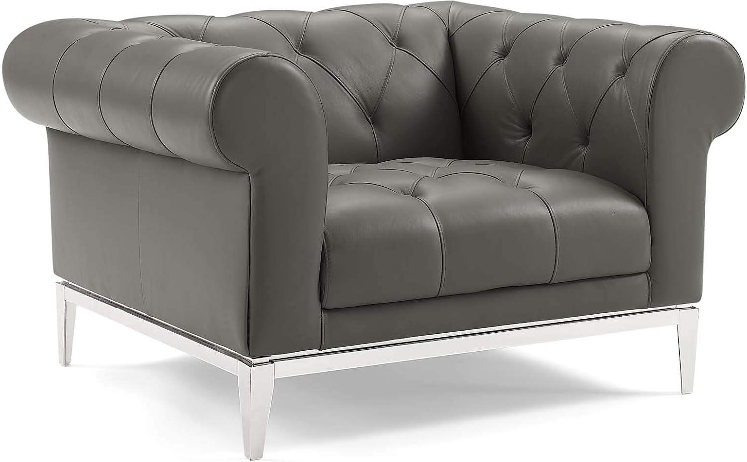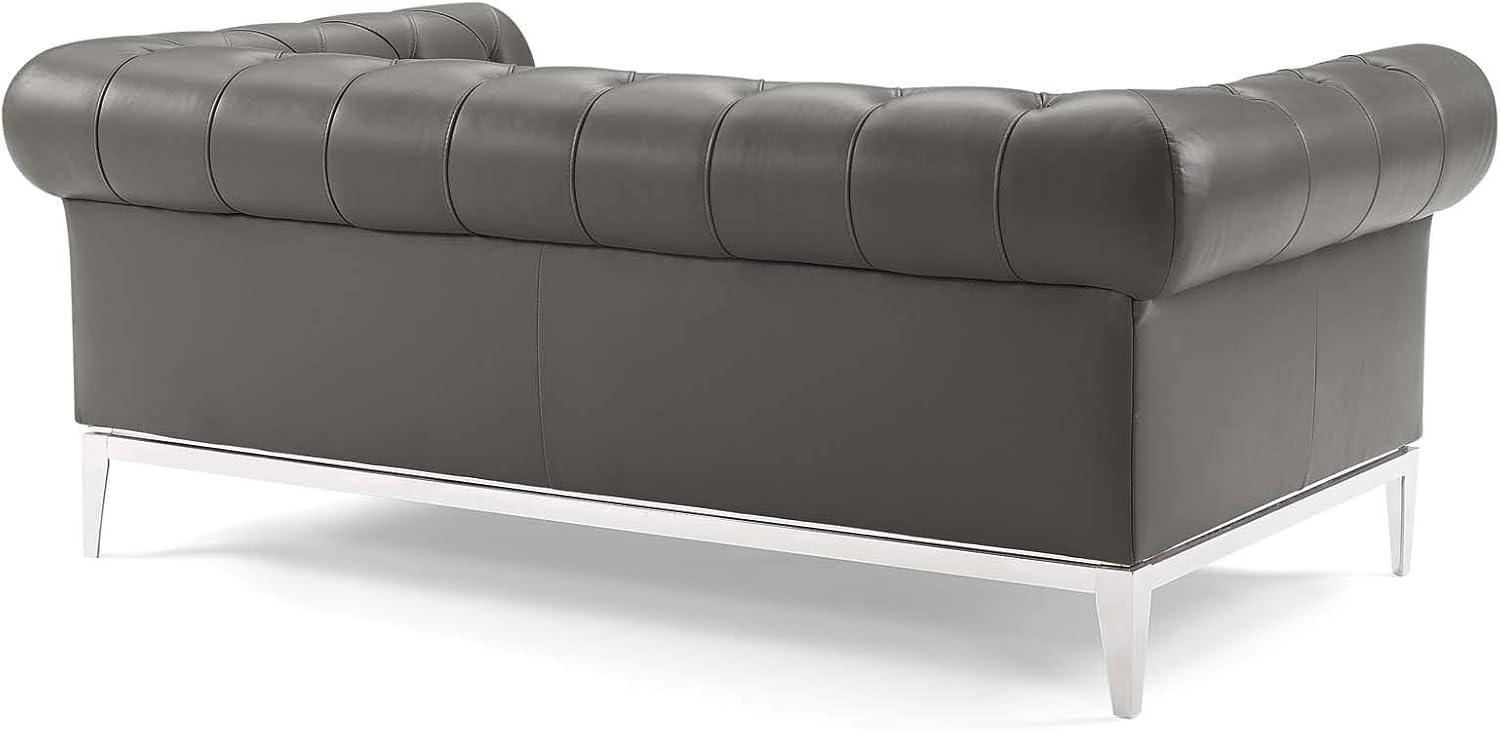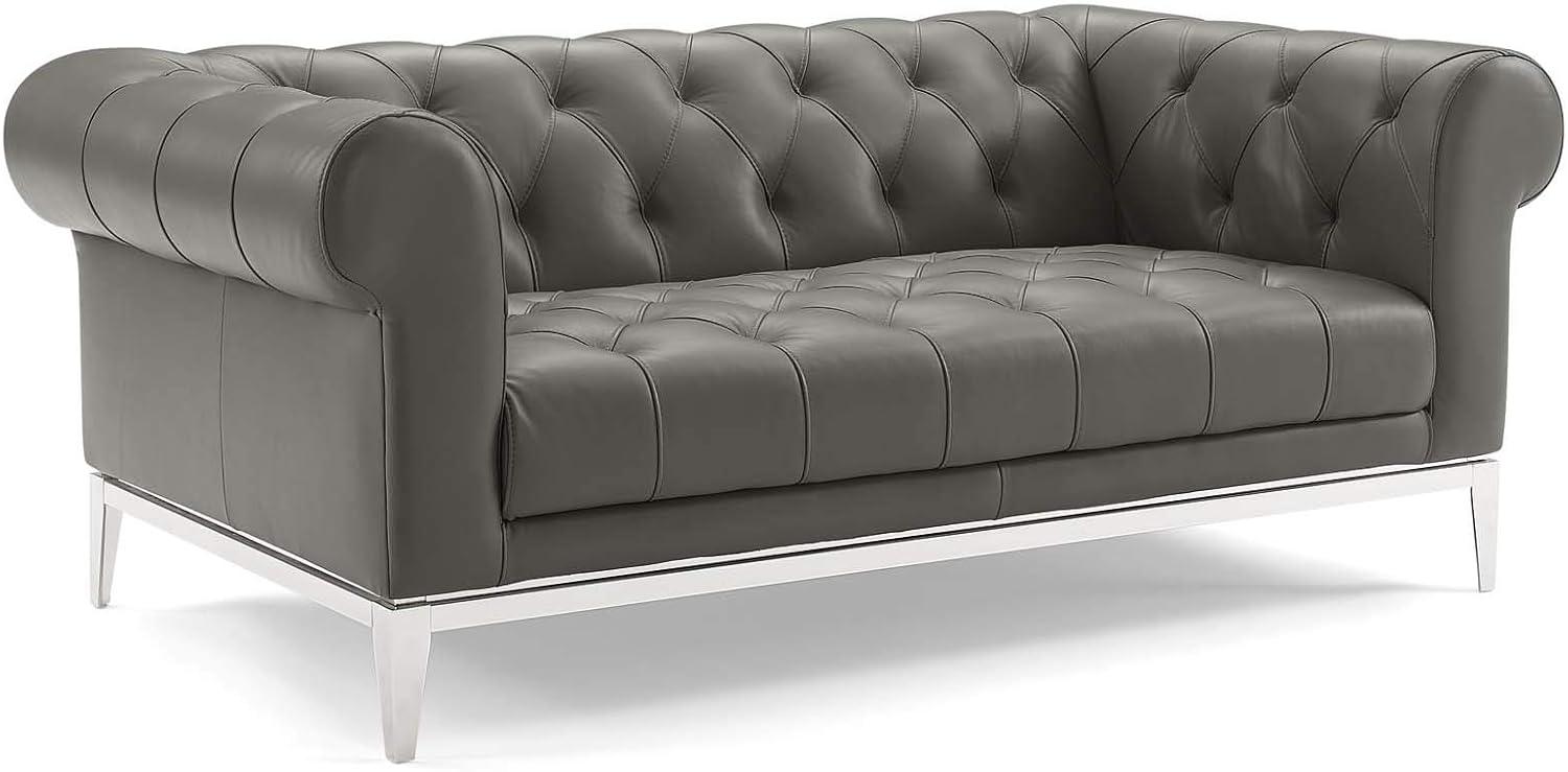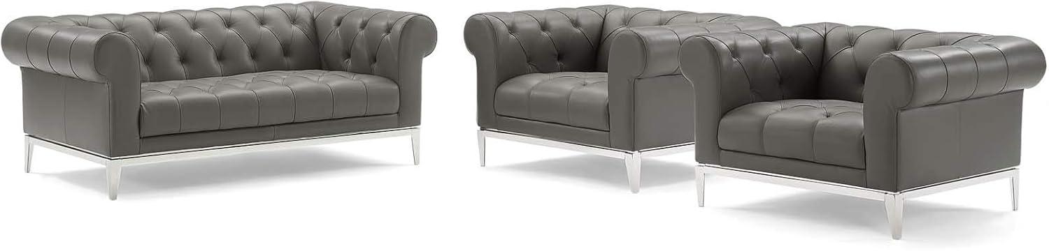 We are truly impressed by the seamless blend of classic elegance and modern sophistication this set brings into any living space.The luxurious gray leather upholstery, paired with the signature rolled arms and tufted button accents, creates a vintage charm that never goes out of style. Its polished stainless steel frame adds just the right touch of contemporary shine, making it a versatile centerpiece whether your decor leans customary or modern minimalism. The plush foam padding and smooth curves invite comfort without compromising on visual appeal, encouraging us to spend more time relaxing and entertaining in style.